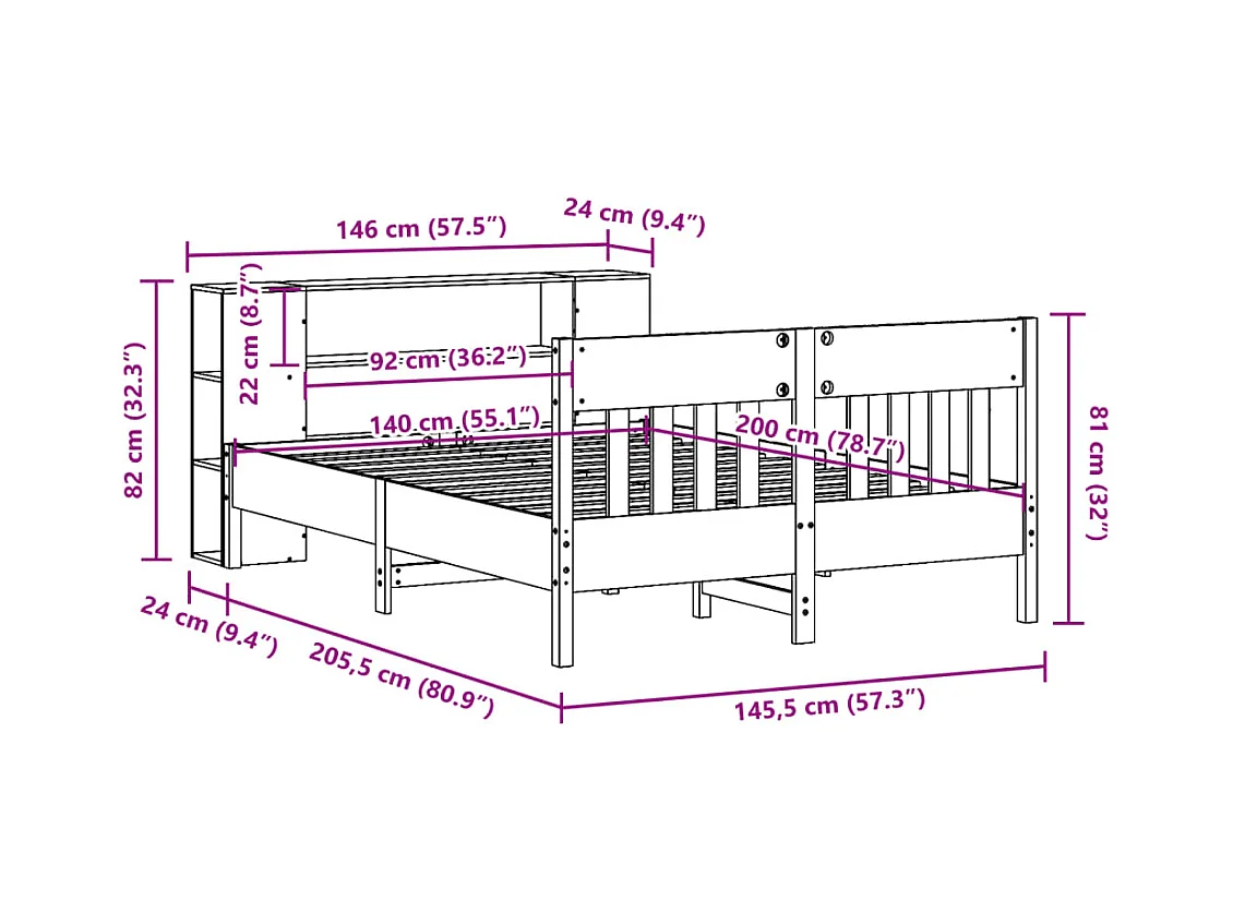 Letto Libreria senza Materasso 140x200 cm in Legno di Pino