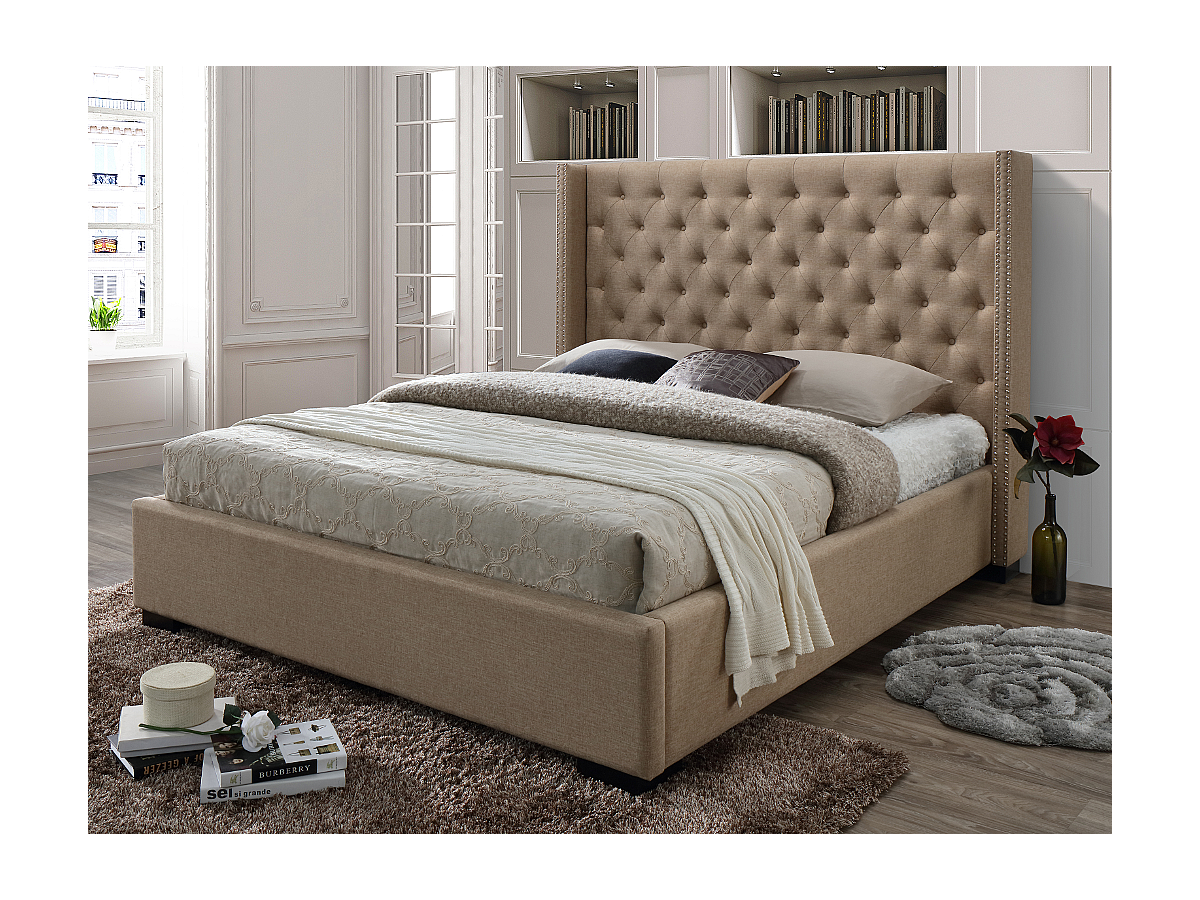 Letto matrimoniale con testiera capitonné 180 x 200 cm in Tessuto Beige - MASSIMO