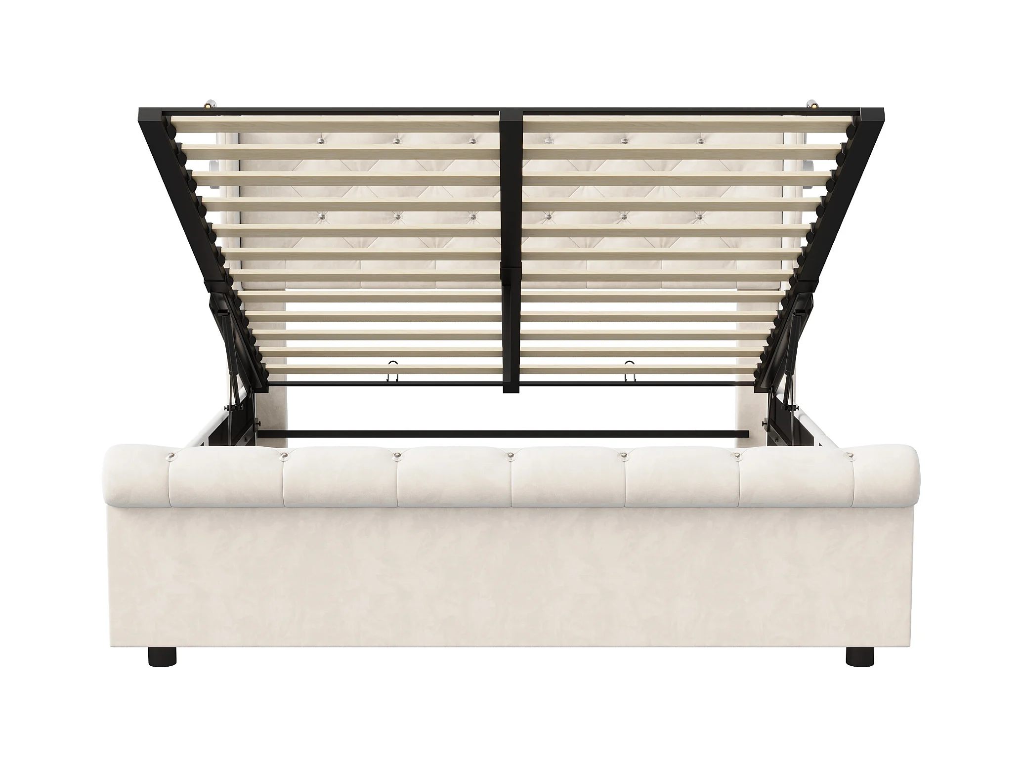 Letto matrimoniale 160 x 200 cm, lampada da lettura con funzione di ricarica, letto contenitore, velluto, beige