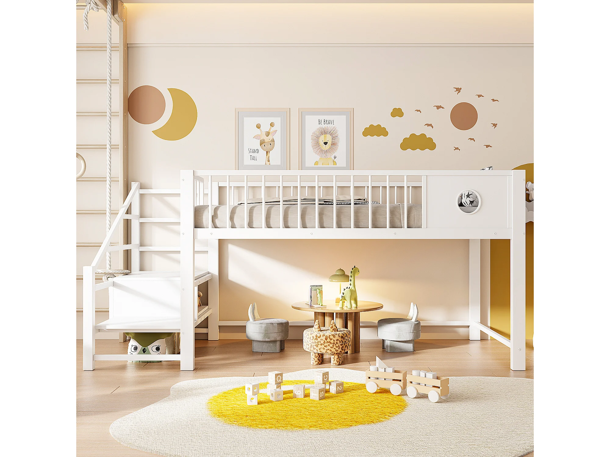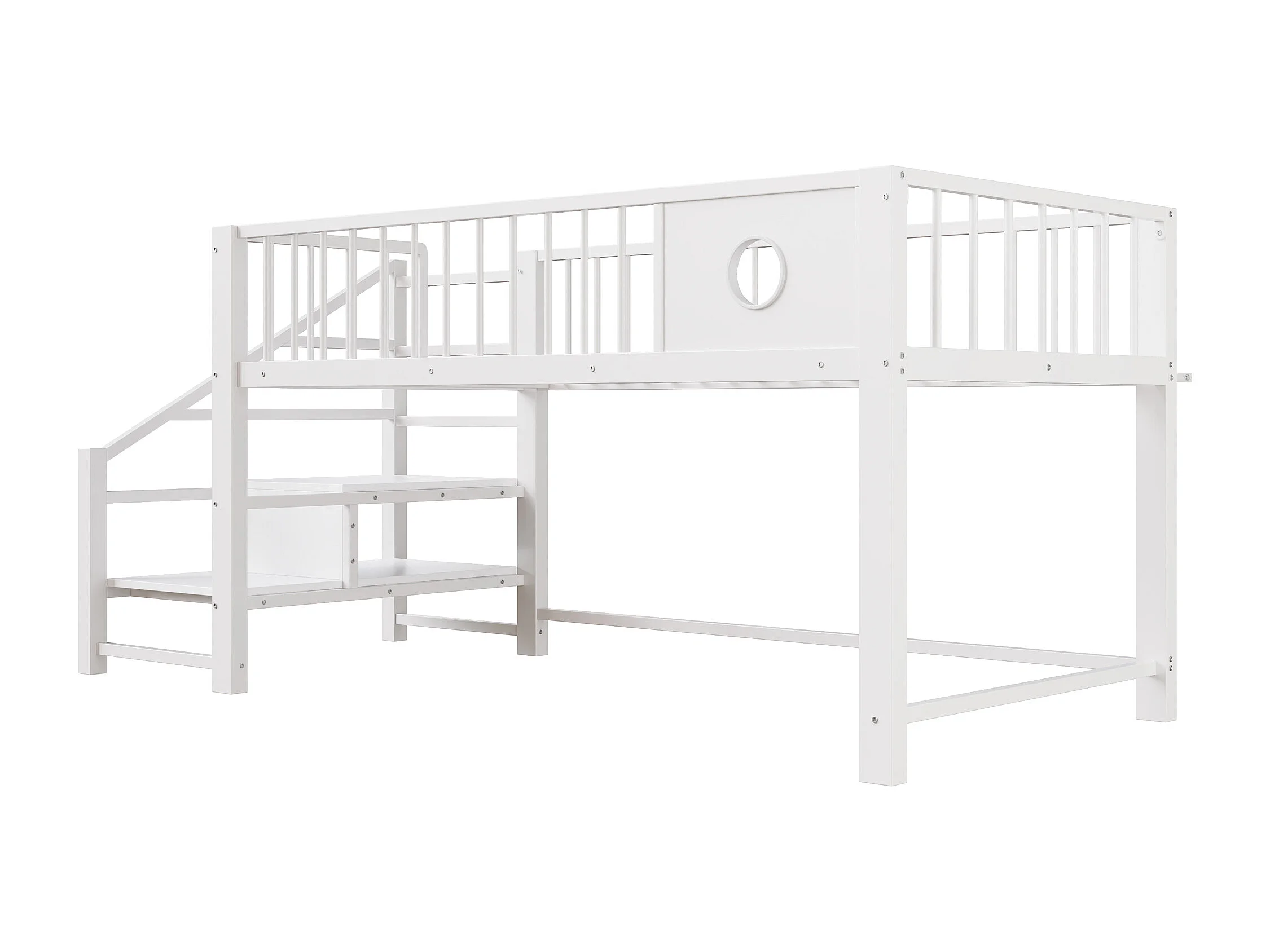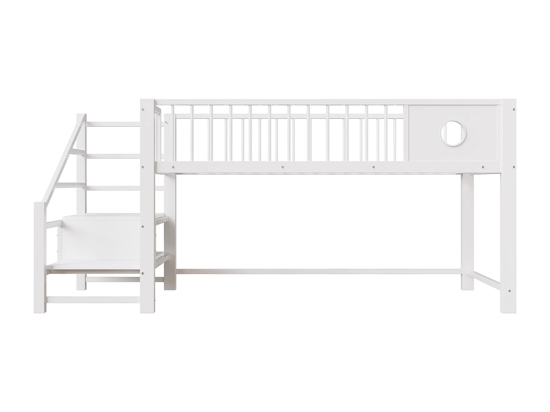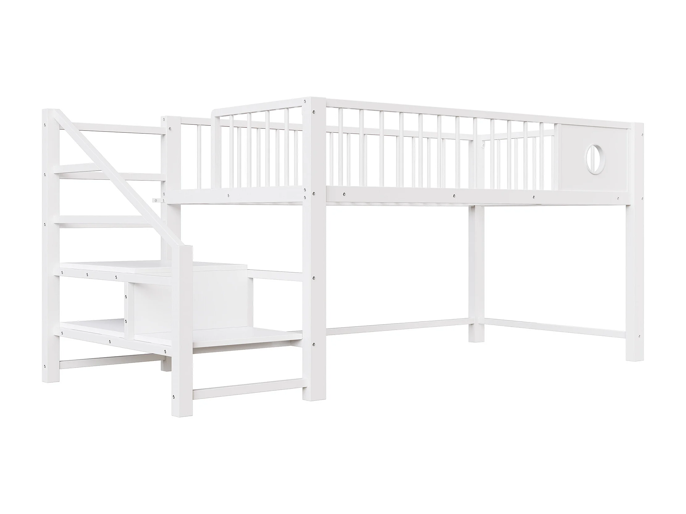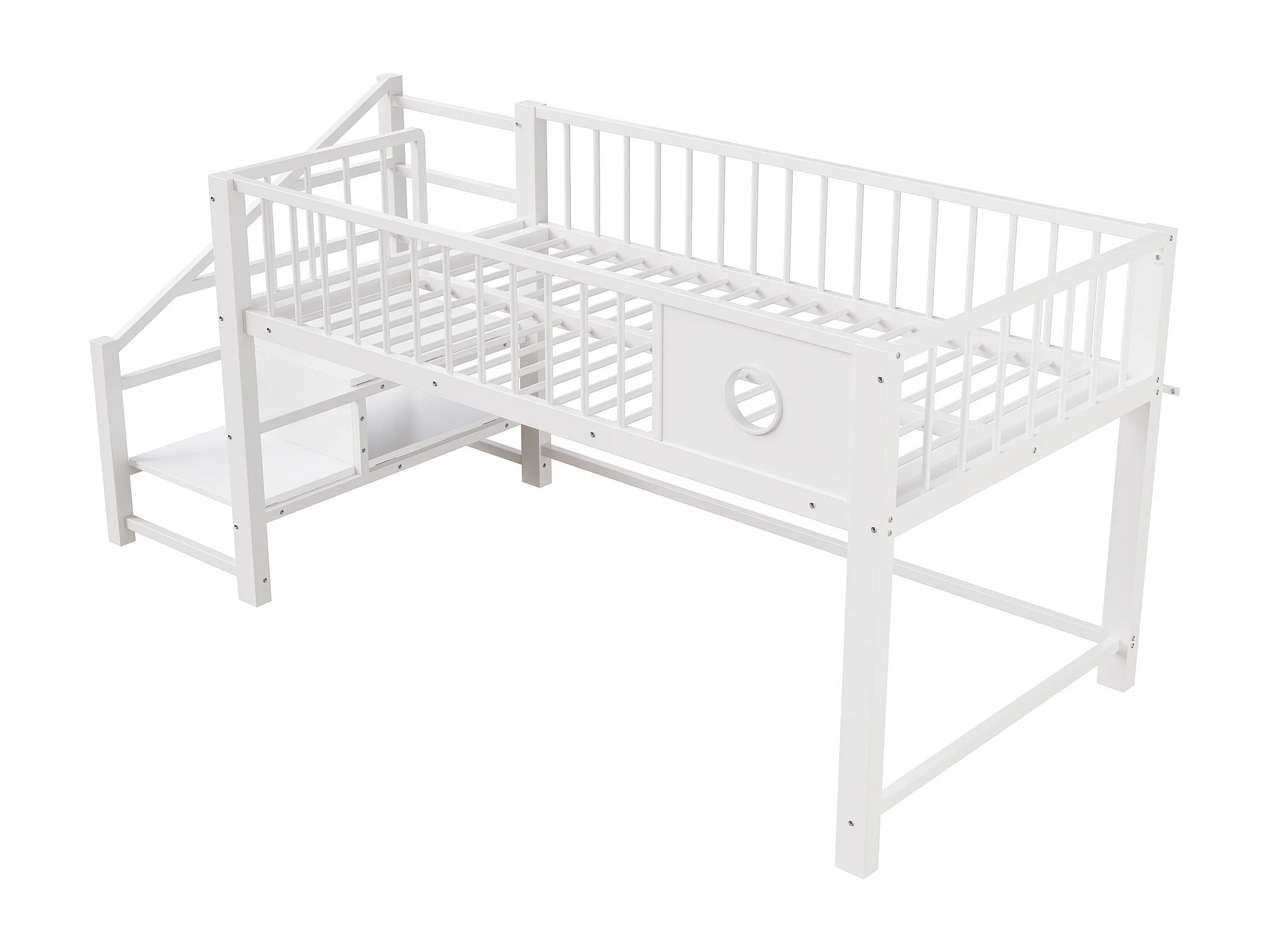 Letto per bambini 90 x 200 cm - con scala di riporre - telaio in metallo - bianco (materasso non incluso)