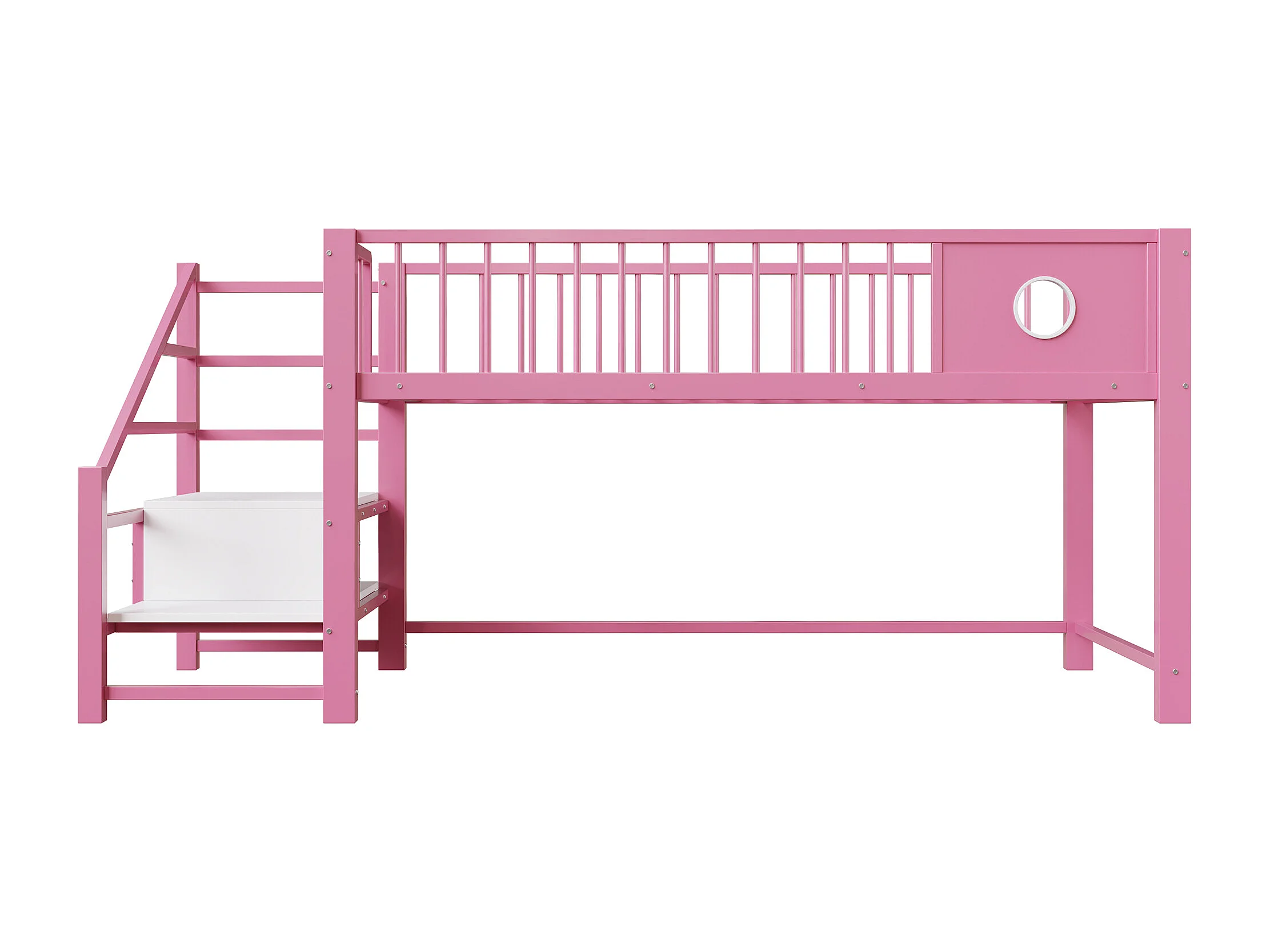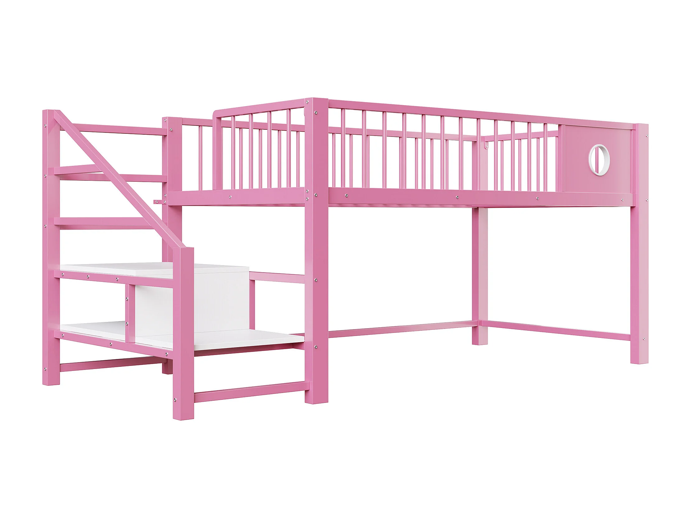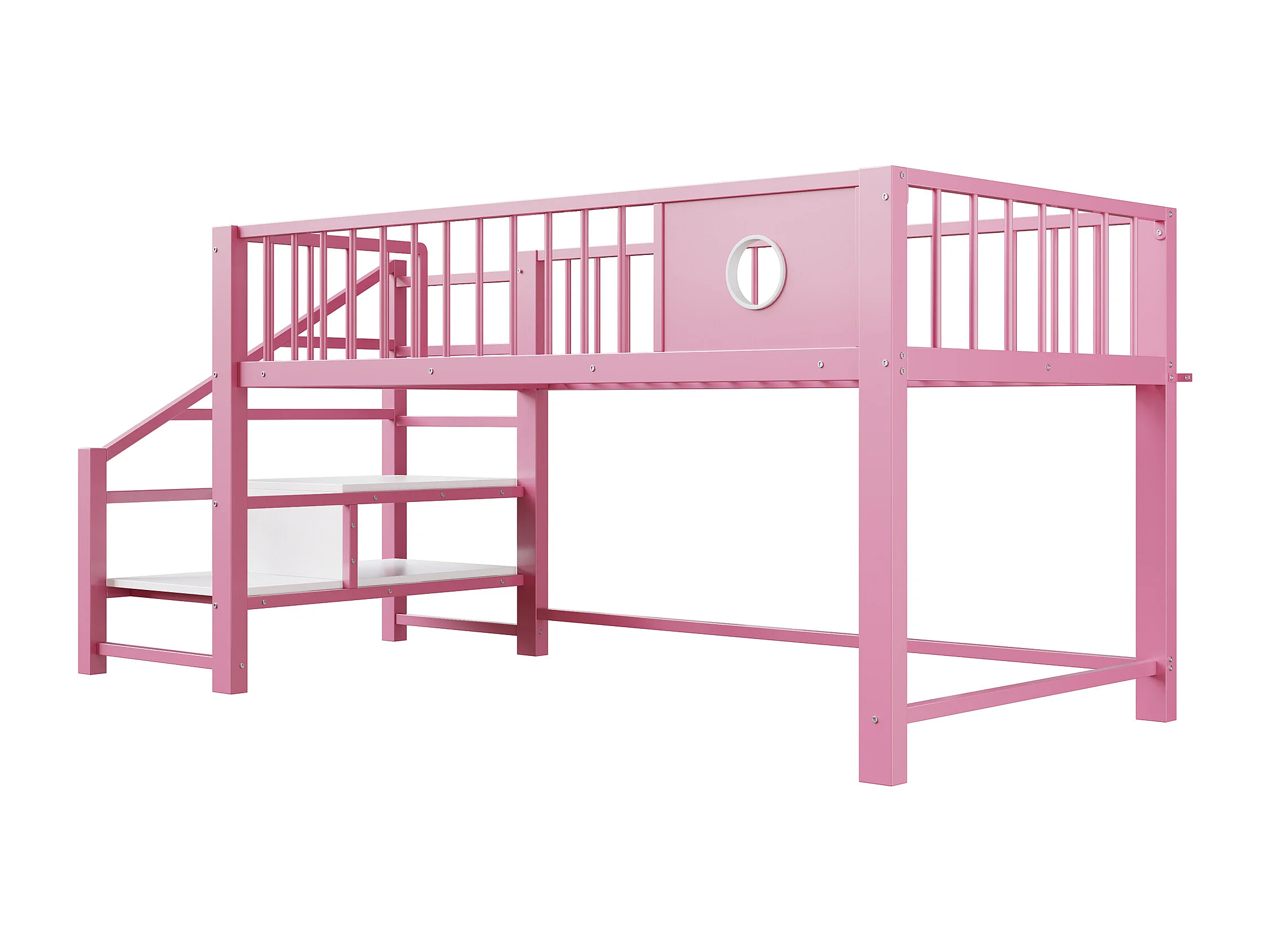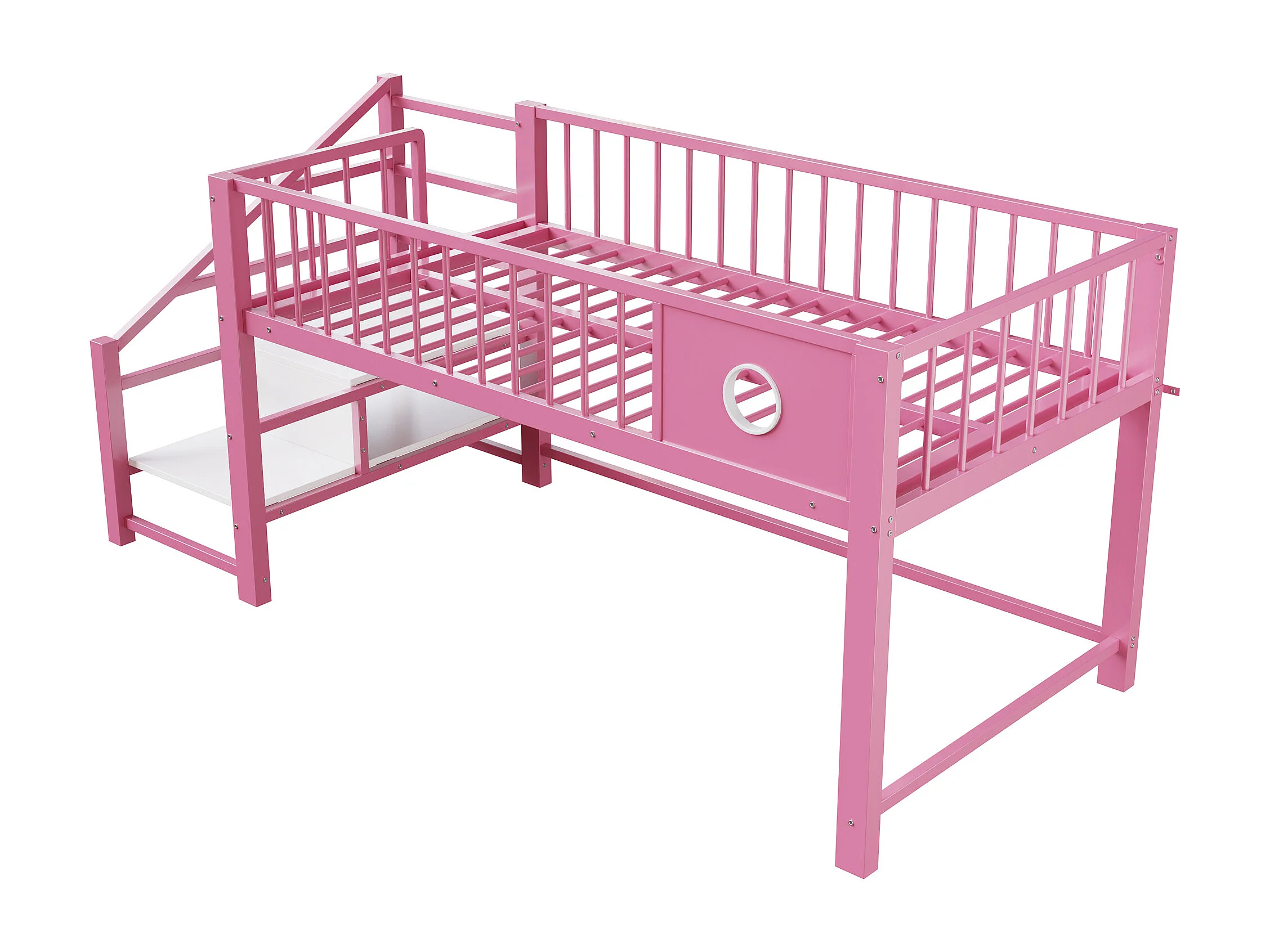 Letto per bambini 90 x 200 cm - con scala di riporre - telaio in metallo - rosa (materasso non incluso)