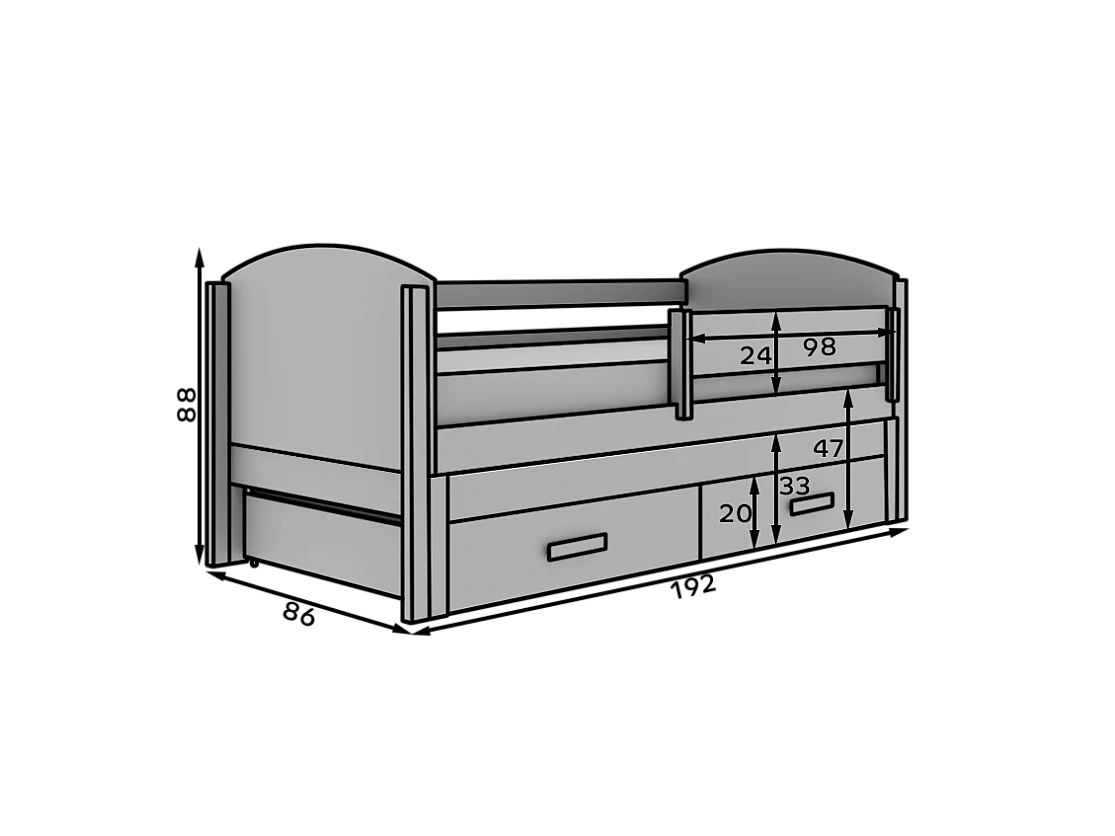 Letto per bambini Liam/80x180/2 zone notte/Bianco