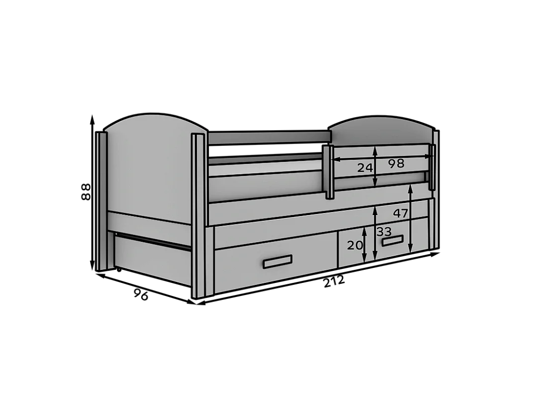 Letto per bambini Liam/90x200/2 zone notte/bianco