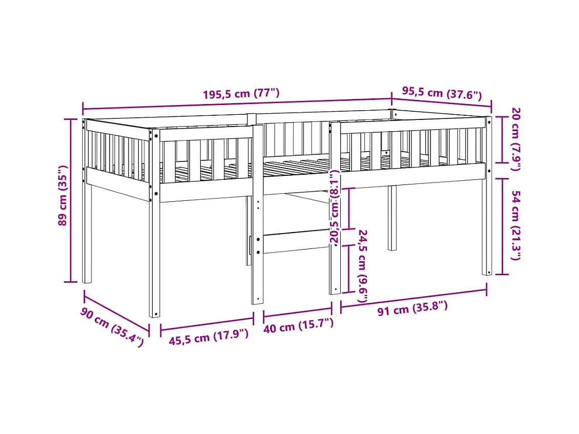 Letto per Bambini senza Materasso 90x190 cm Legno Massello Pino