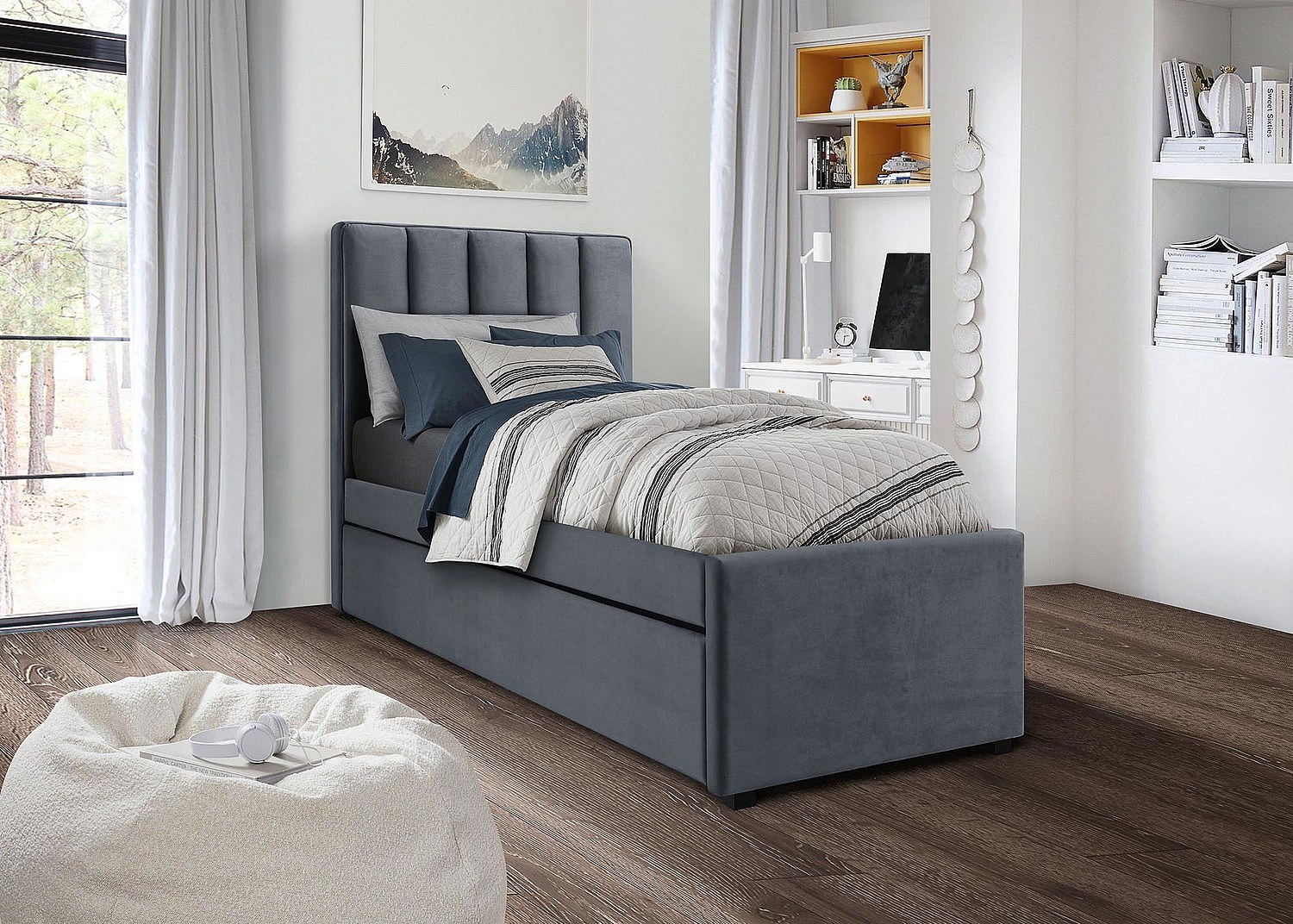 Letto con ottomano Velluto METZ 90 x 200 cm Grigio