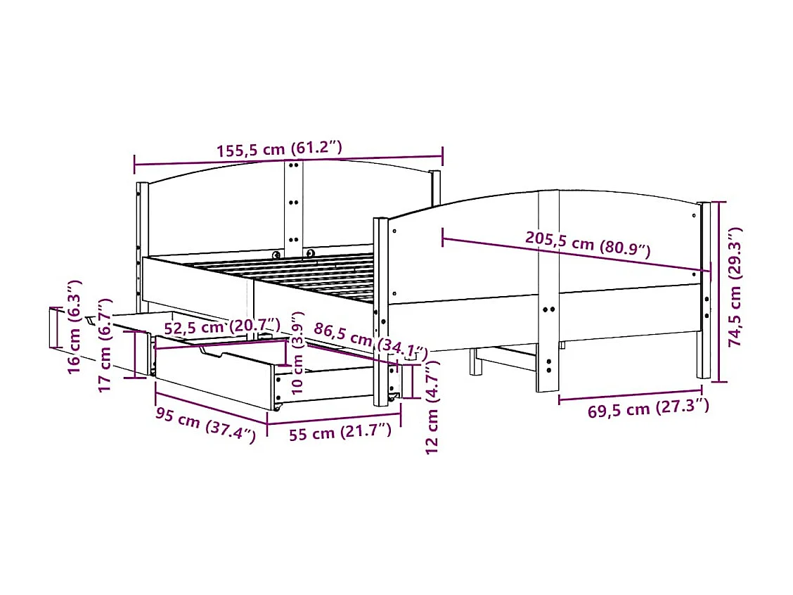 Letto senza Materasso 150x200 cm in Legno Massello di Pino