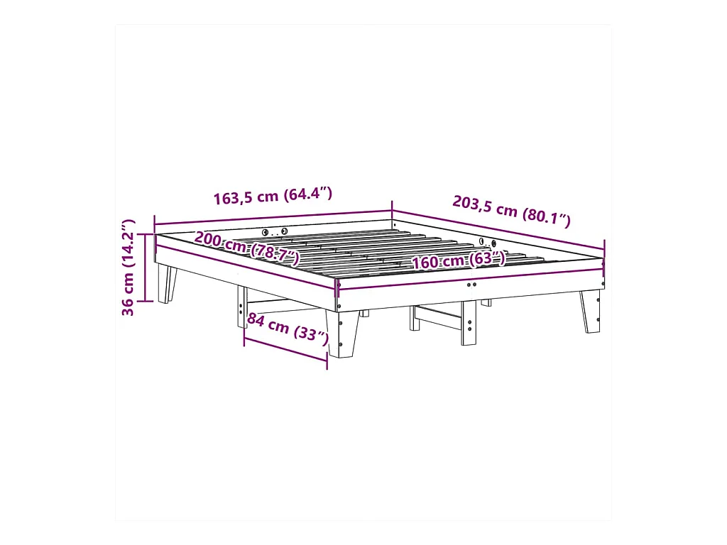 Letto senza Materasso 160x200 cm in Legno Massello di Pino