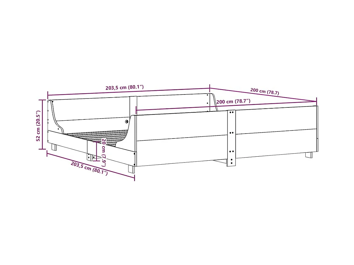 Letto senza Materasso 200x200 cm in Legno Massello di Pino