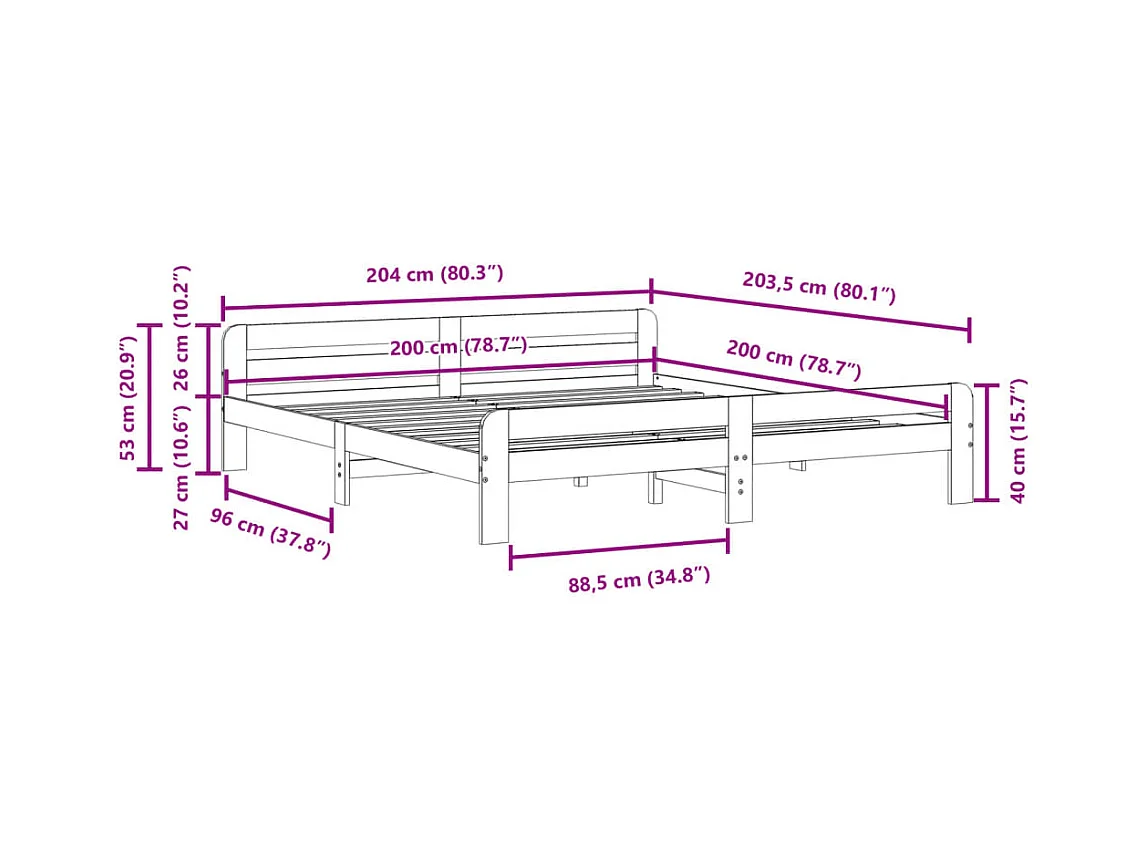 Letto senza Materasso 200x200 cm in Legno Massello di Pino