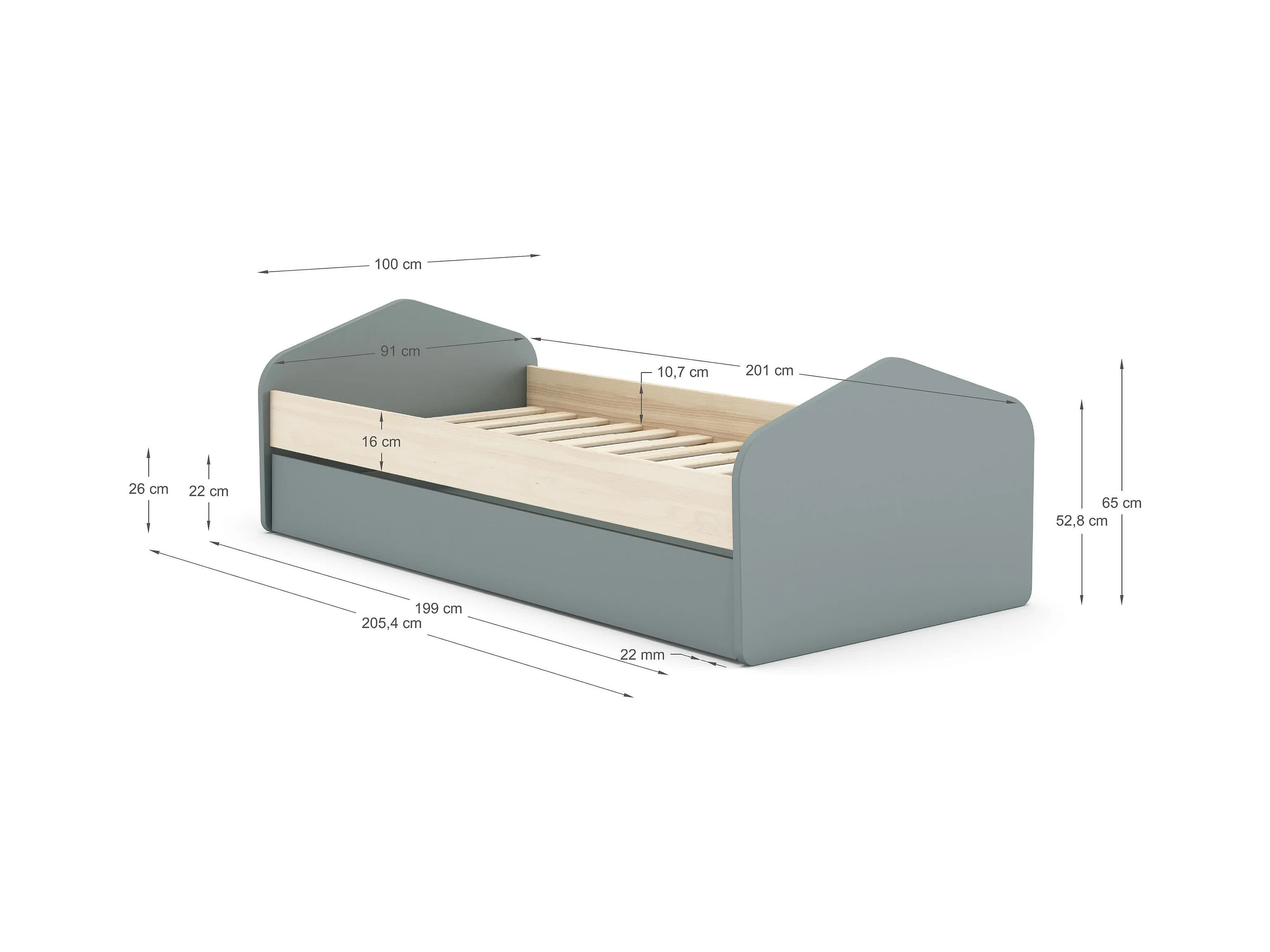 Letto singolo con cassettone estraibile 205x100 cm