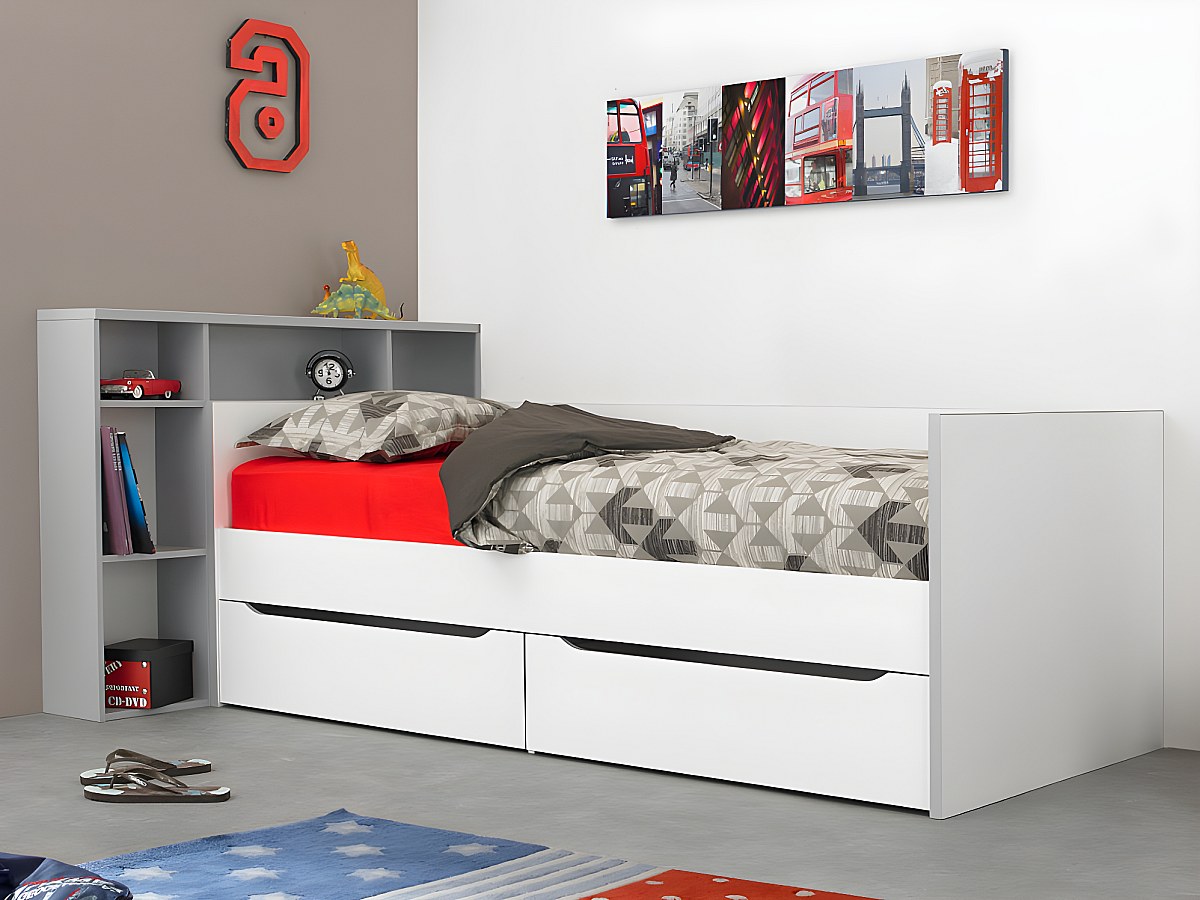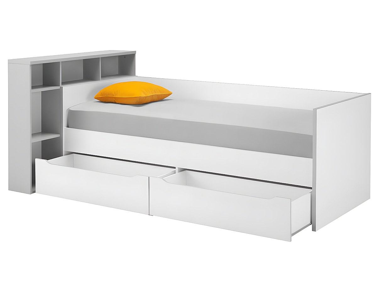 Letto e testata con vani portaoggetti e cassetti 90 x 200 cm Bianco e grigio - OSCAR