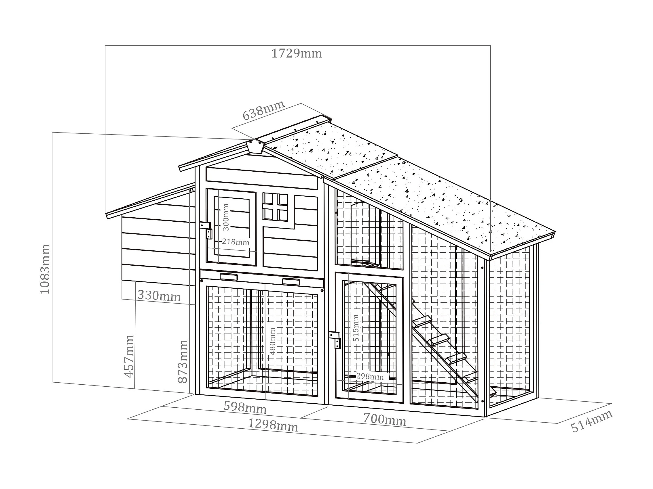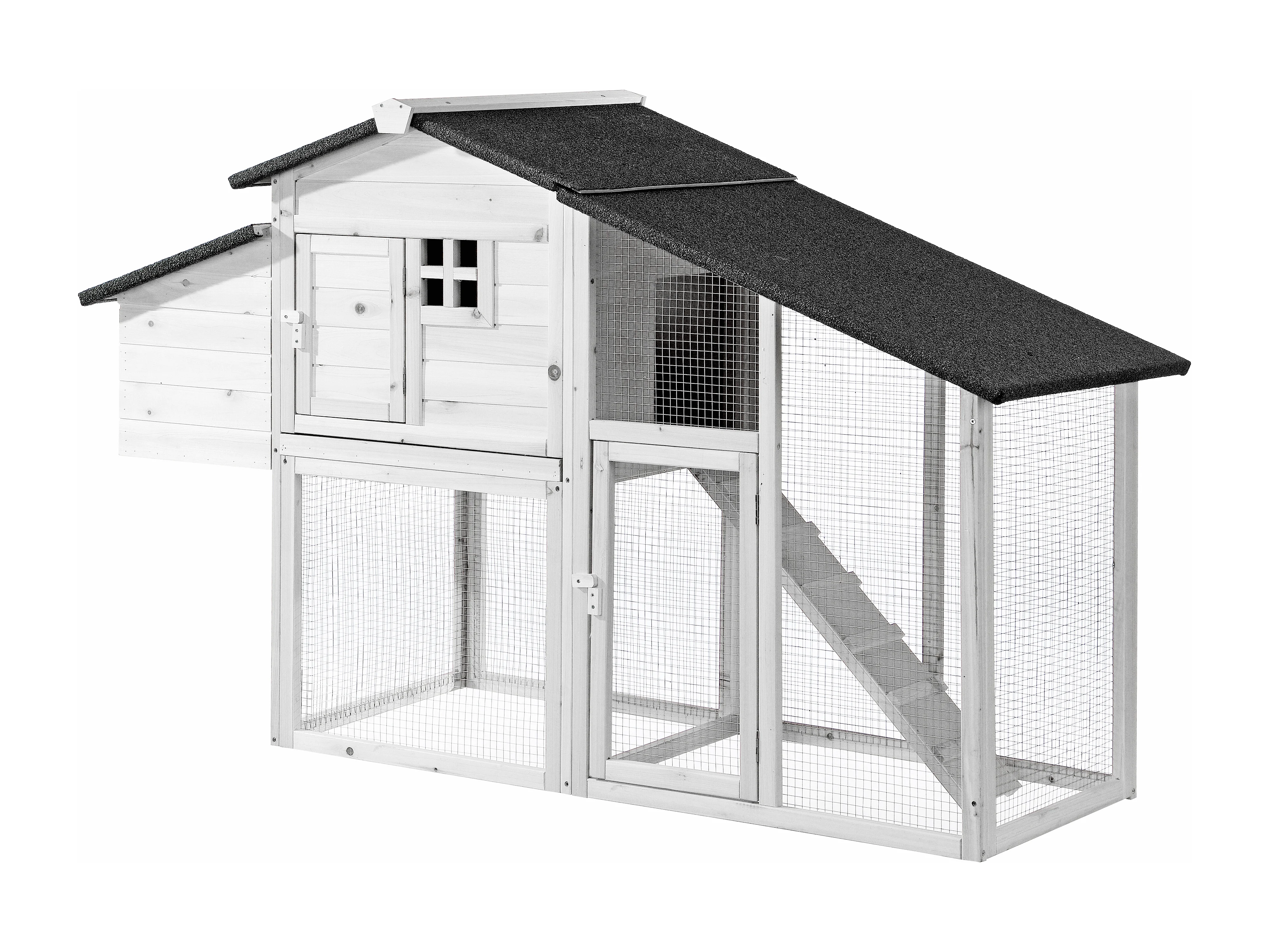 Pollaio in legno con recinto 4 galline L. 173 x P. 64 x H. 108 cm Bianco - LEVAS