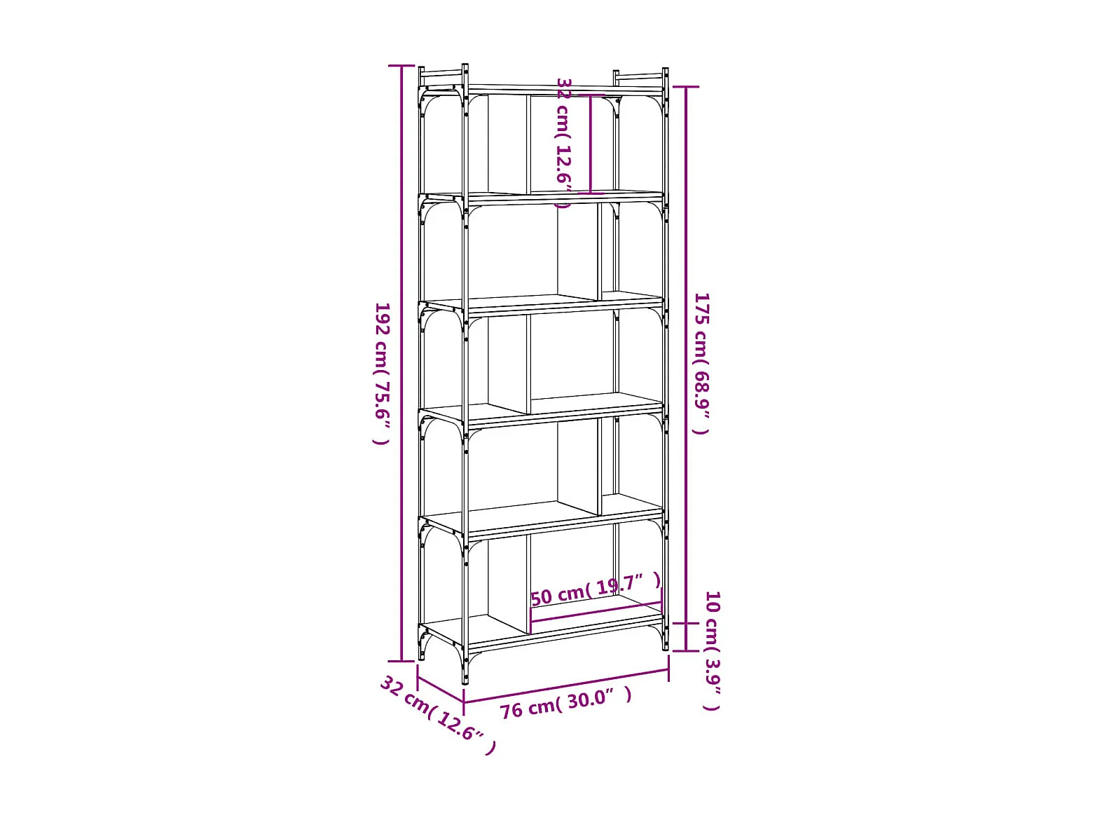 Libreria 6 livelli rovere sonoma 76x32x192 cm