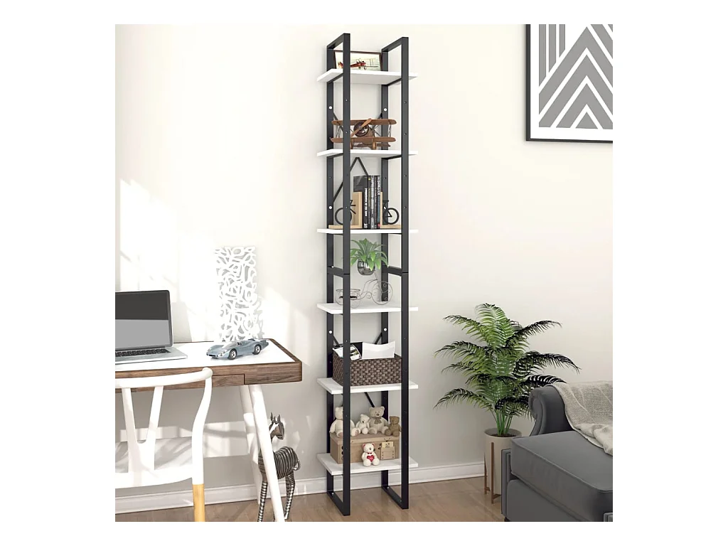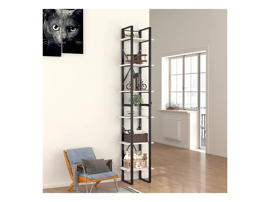Libreria a 6 ripiani bianca 40x30x210 cm in legno ingegnerizzato