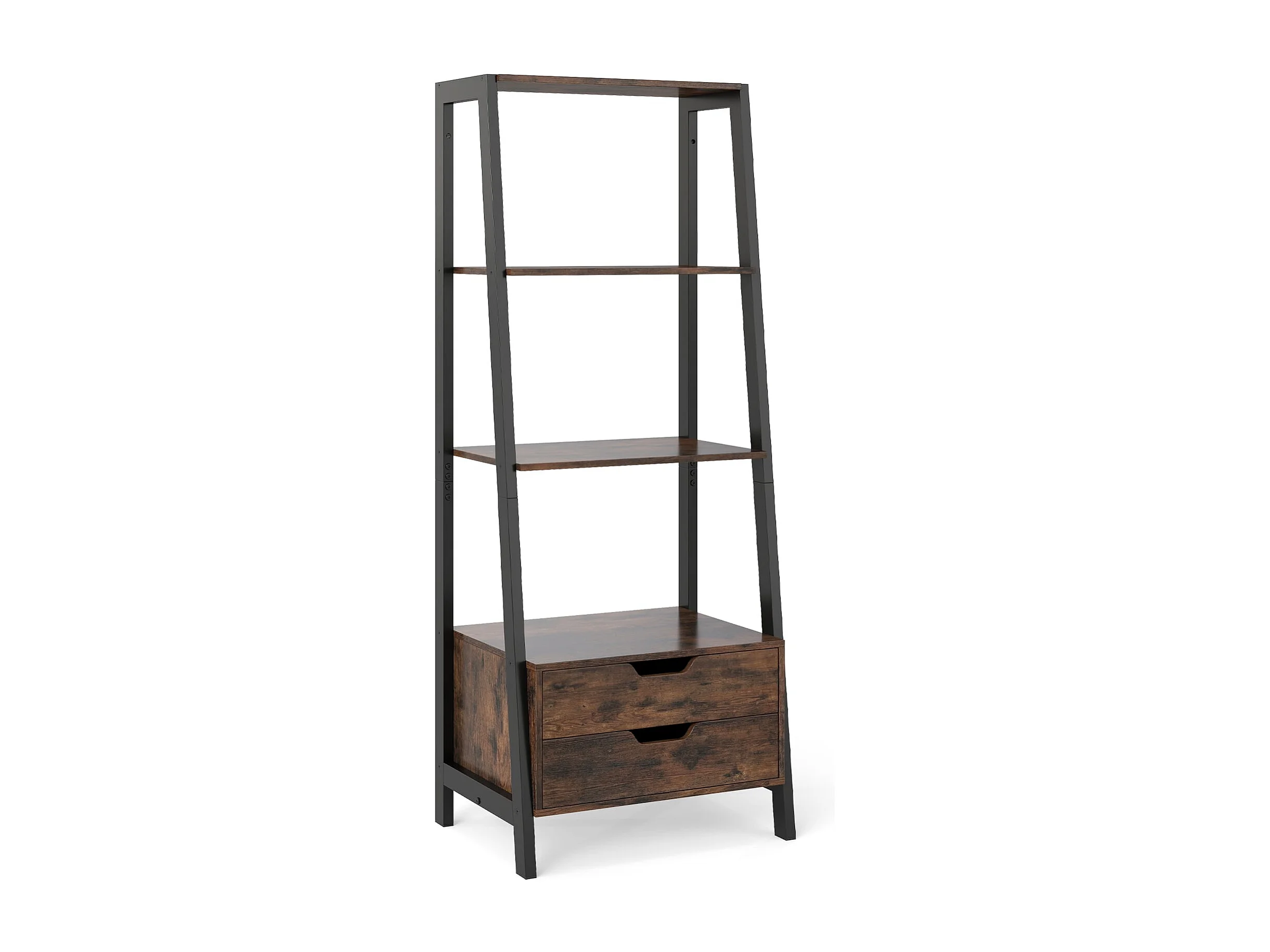 Libreria a scaletta free standing 134 cm con 4 ripiani aperti e 2 cassetti versatile scaffale in piedi marrone