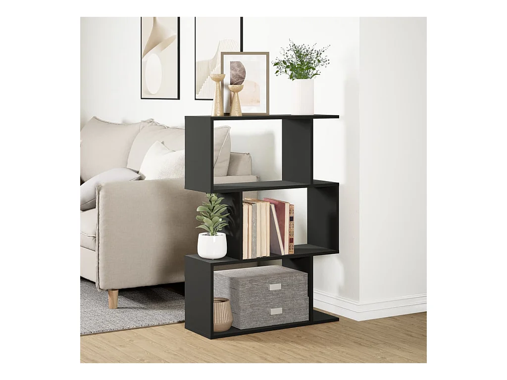 Libreria Divisorio 3 Ripiani Nera 70x24x97 cm in Truciolato