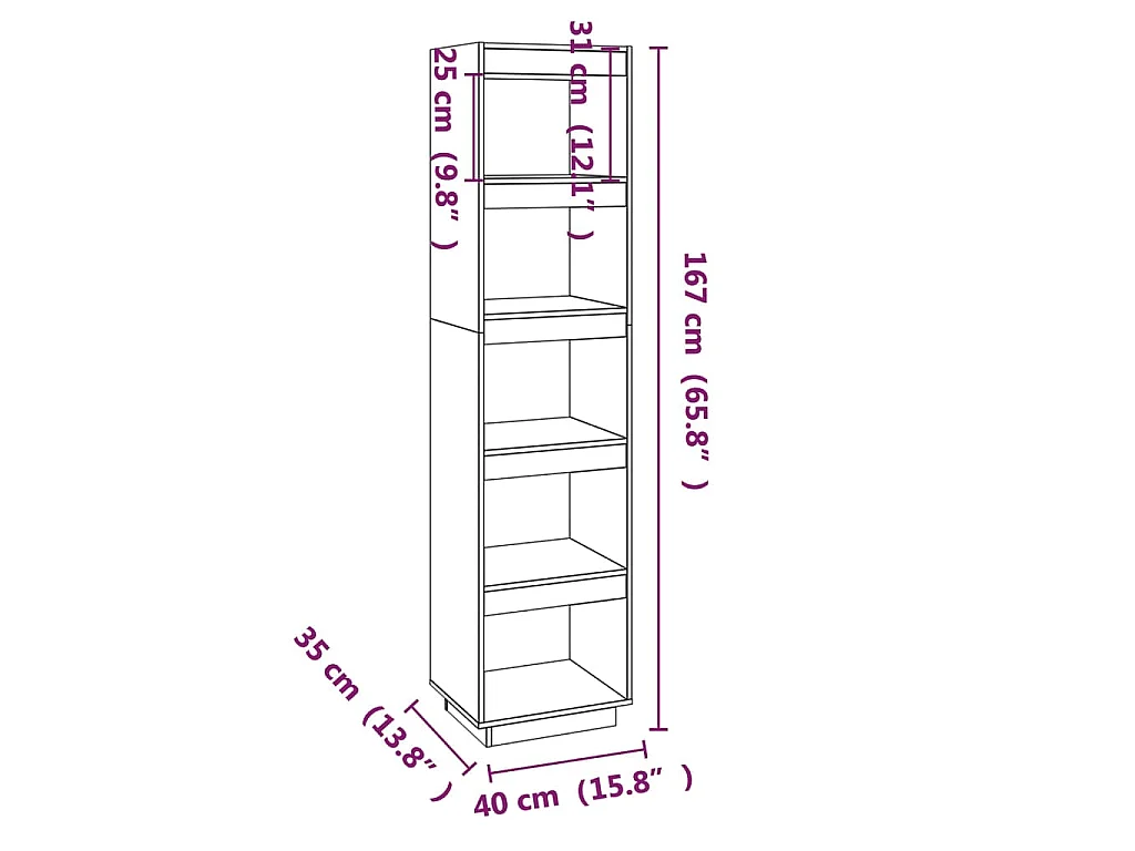 Libreria/Divisorio Grigio 40x35x167 cm in Legno Massello di Pino