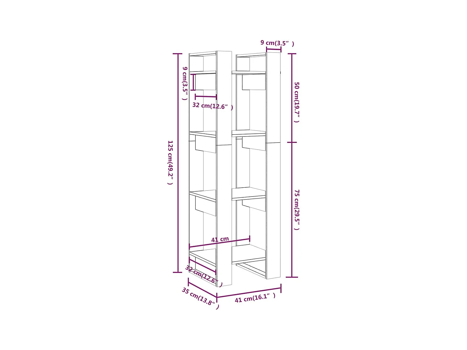 Libreria/Divisorio Grigio 41x35x91 cm Pino Massiccio