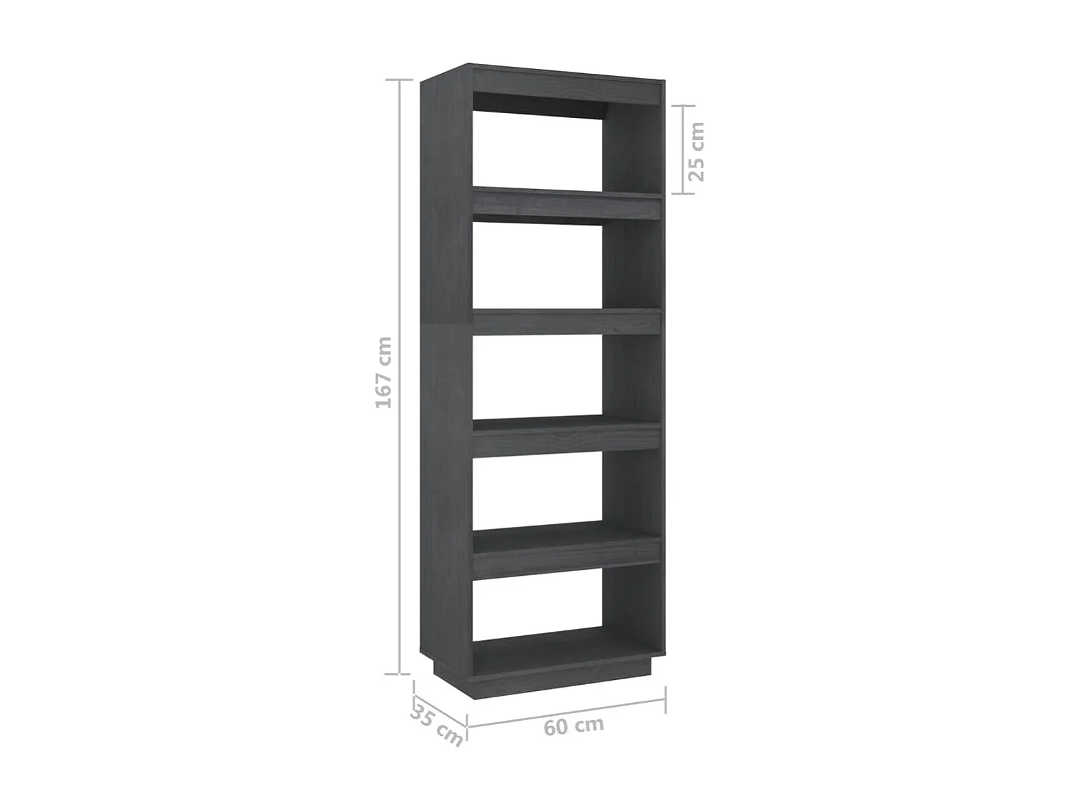Libreria/Divisorio Grigio 60x35x167cm in Legno Massello di Pino