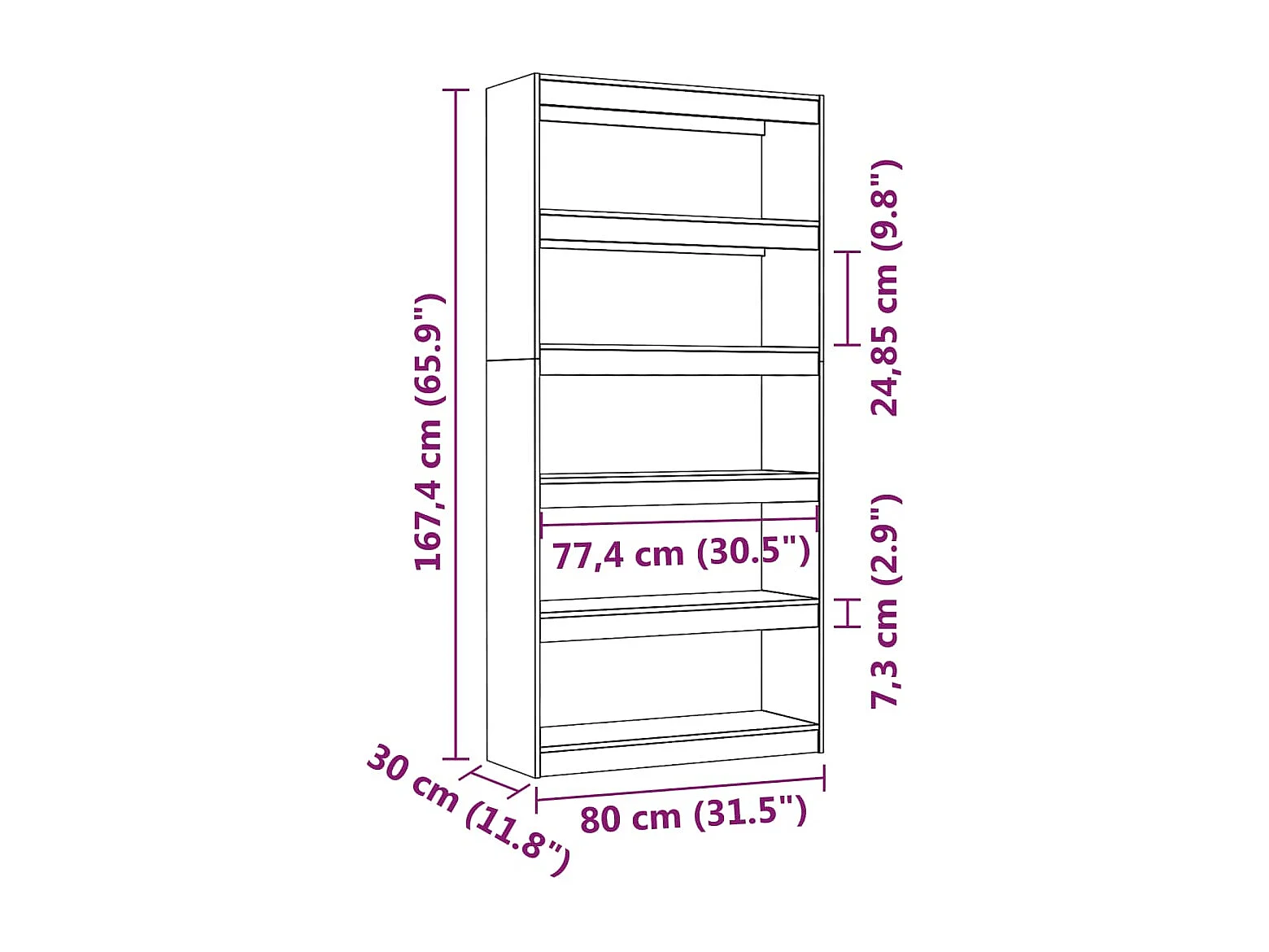 Libreria/Divisorio Nero 80x30x167,4 cm Pino Massiccio