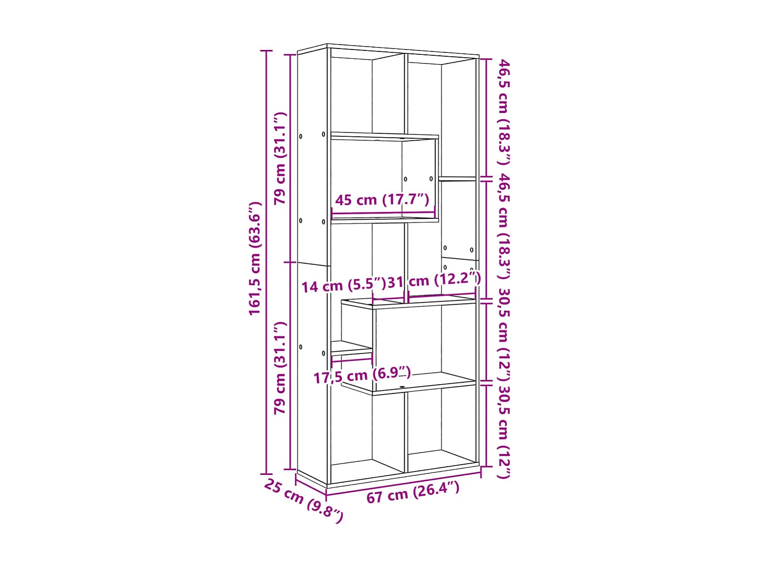 Libreria Divisorio Rovere Marrone 67x25x161,5 cm in Truciolato