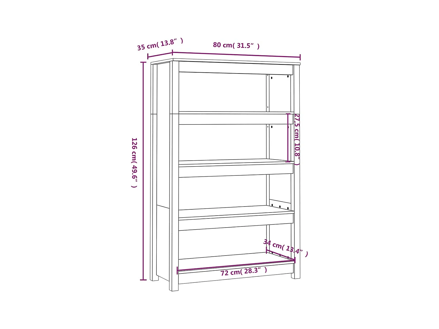 Libreria grigia 80x35x126 cm in legno massello di pino
