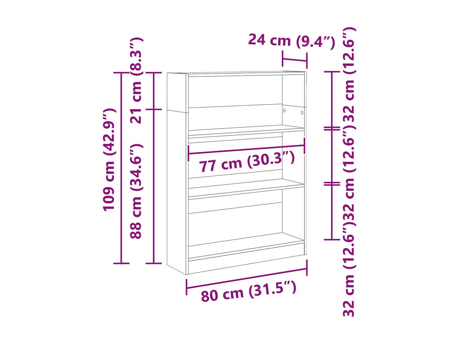 Libreria grigia Sonoma 80x24x109 cm in legno ingegnerizzato