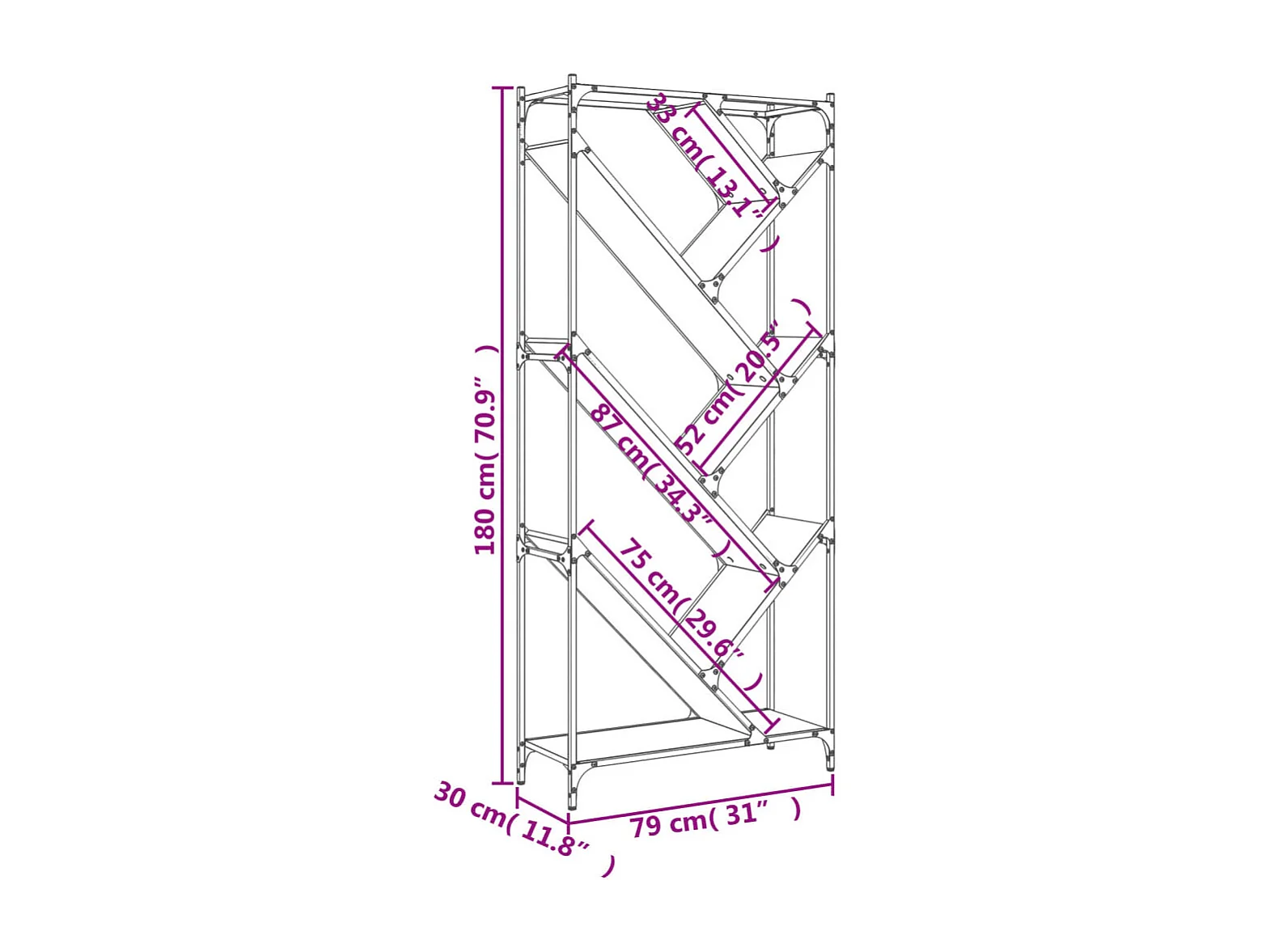 Libreria in rovere Sonoma 79x30x180 cm in legno ingegnerizzato e metallo