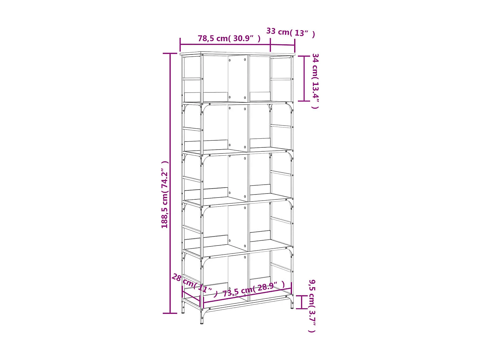 Libreria Nera 78,5x33x188,5 cm in Legno Multistrato