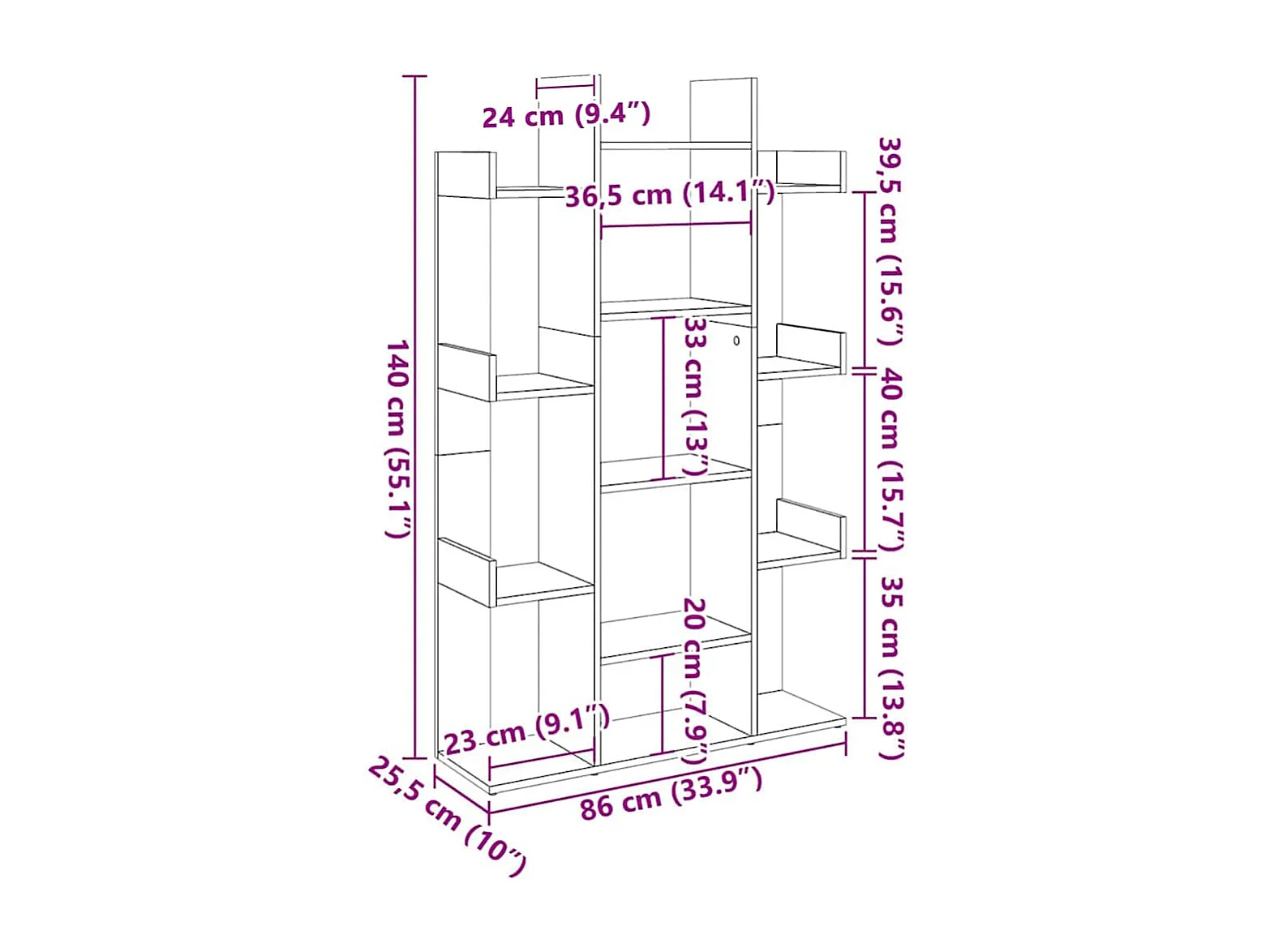 Libreria in rovere nero 86x25,5x140 cm in legno ingegnerizzato