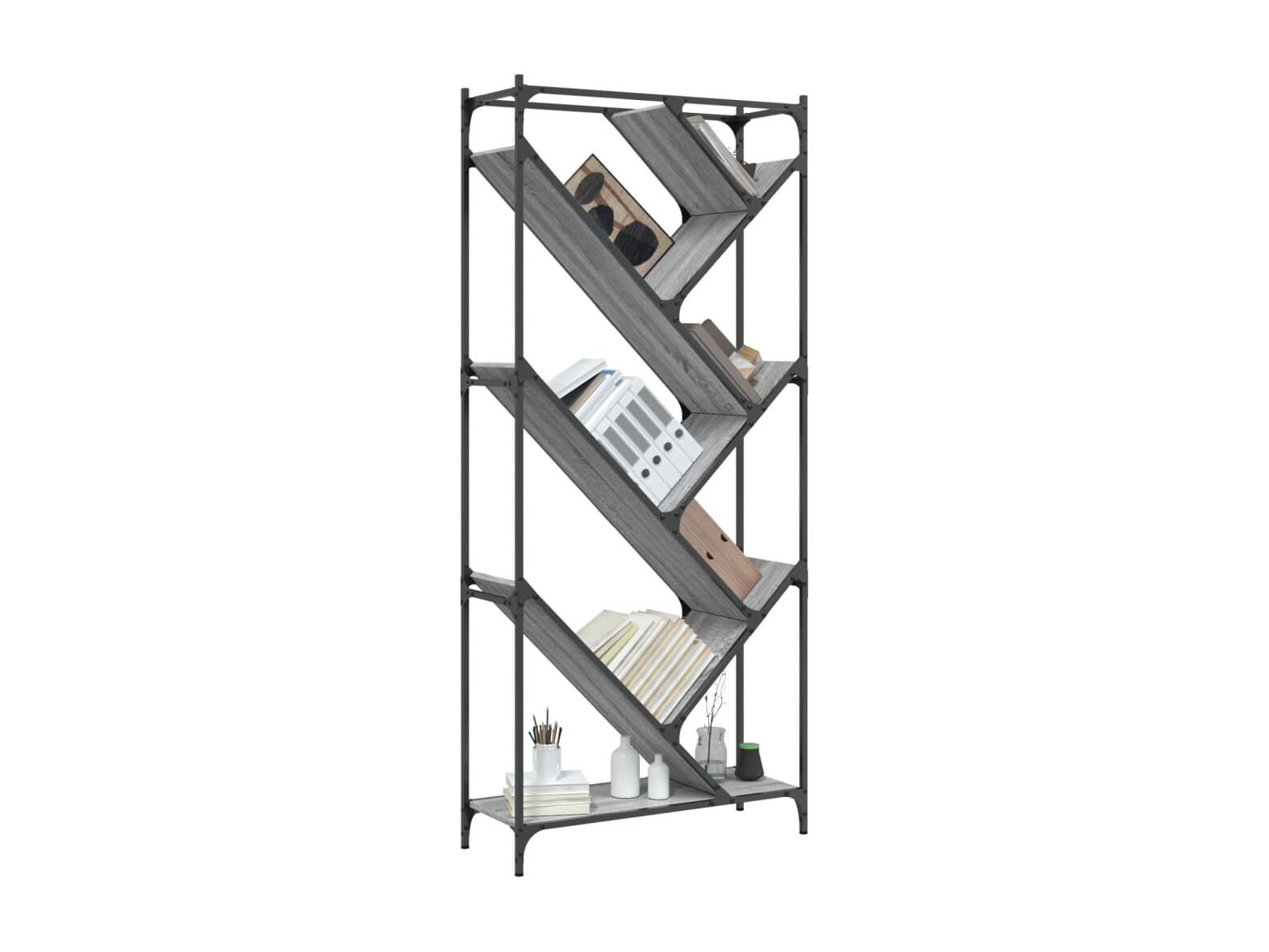 Libreria Sonoma grigia 79x30x180 cm in legno ingegnerizzato e metallo