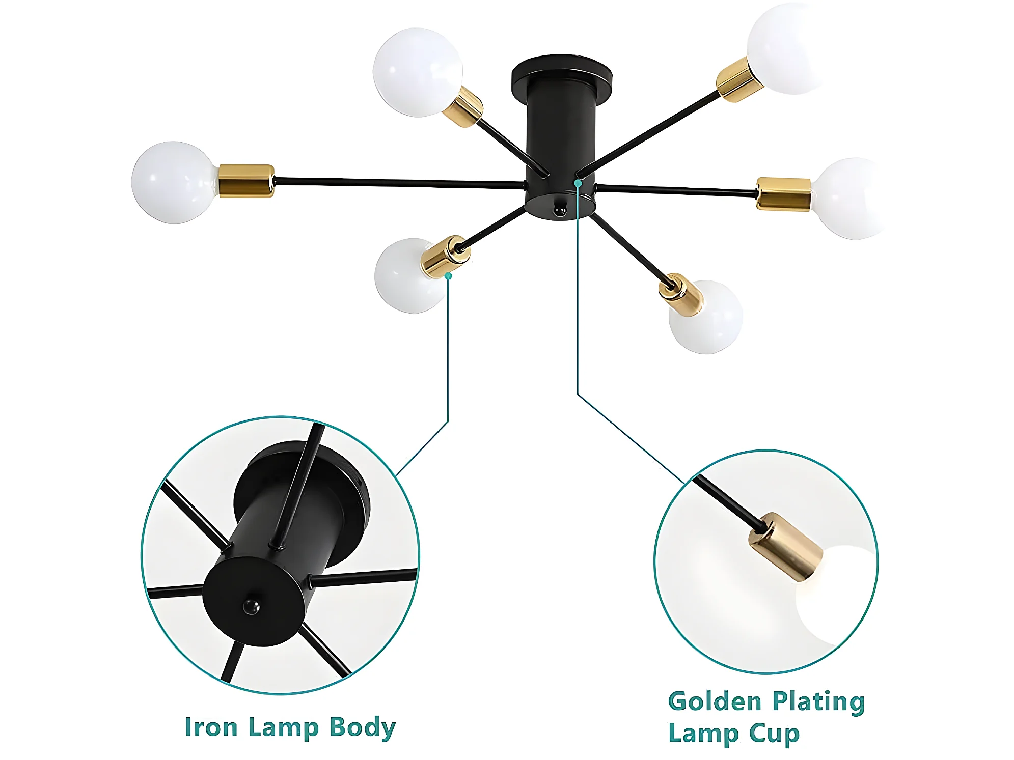 Lumo industriale Light Vintage Vintage lampadario, 54*54*15 cm, 6-Lampe senza lampadina E27, in metallo