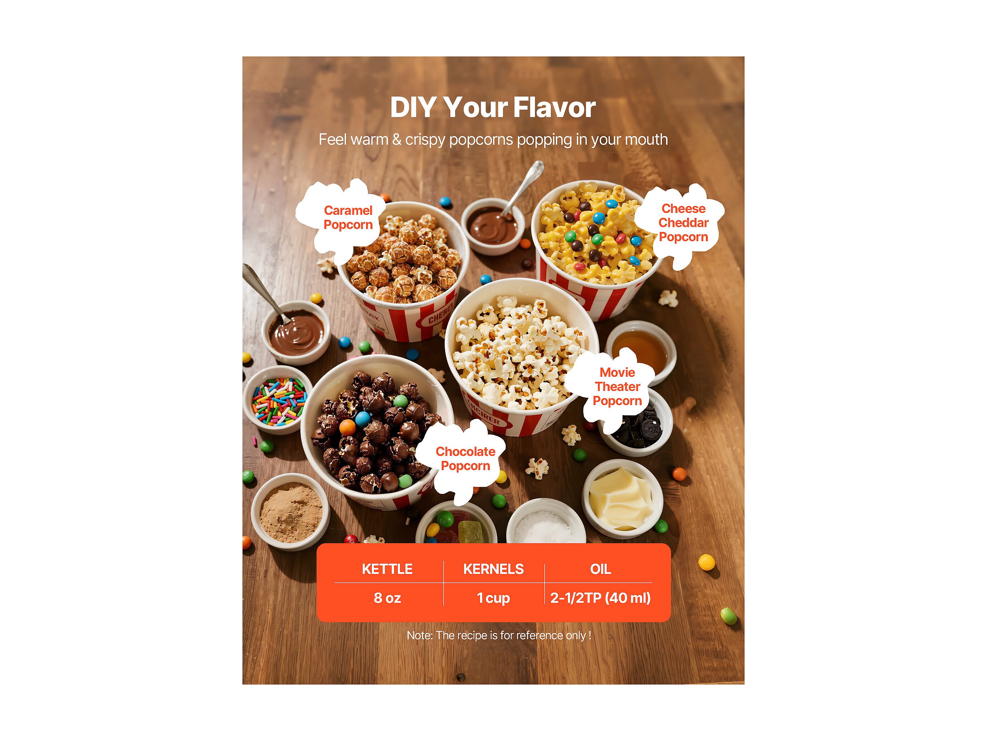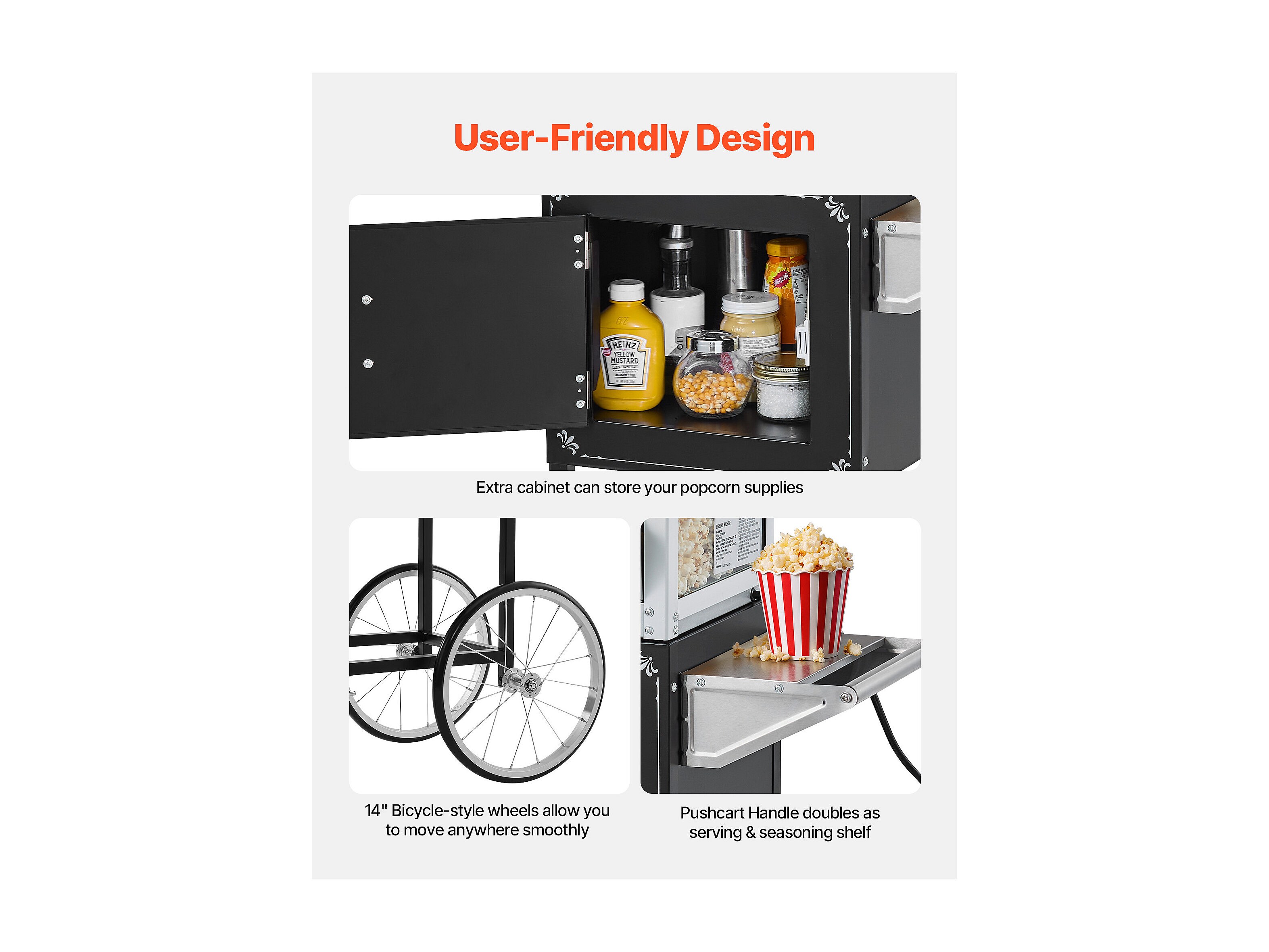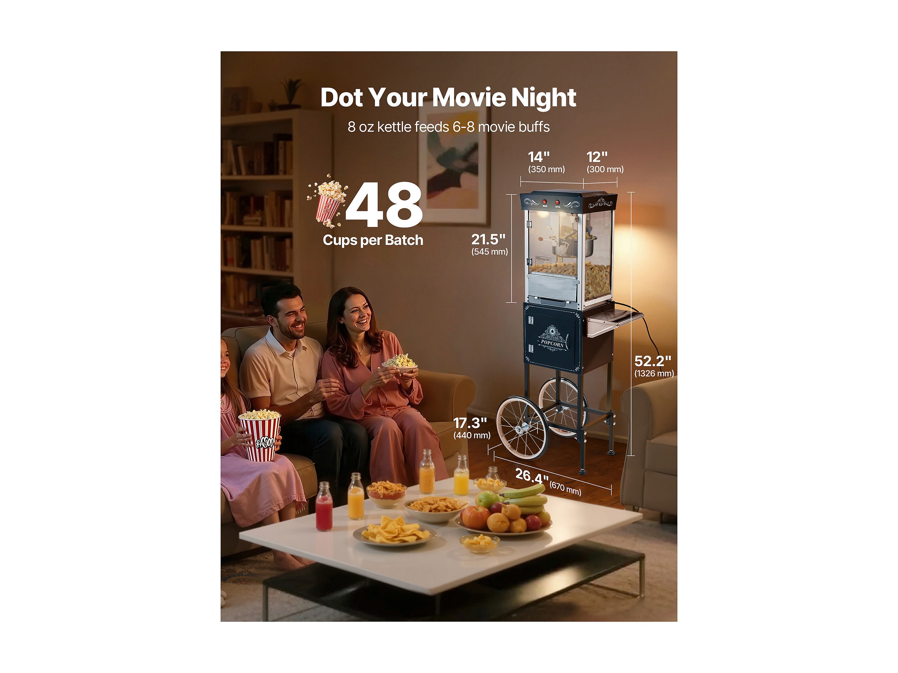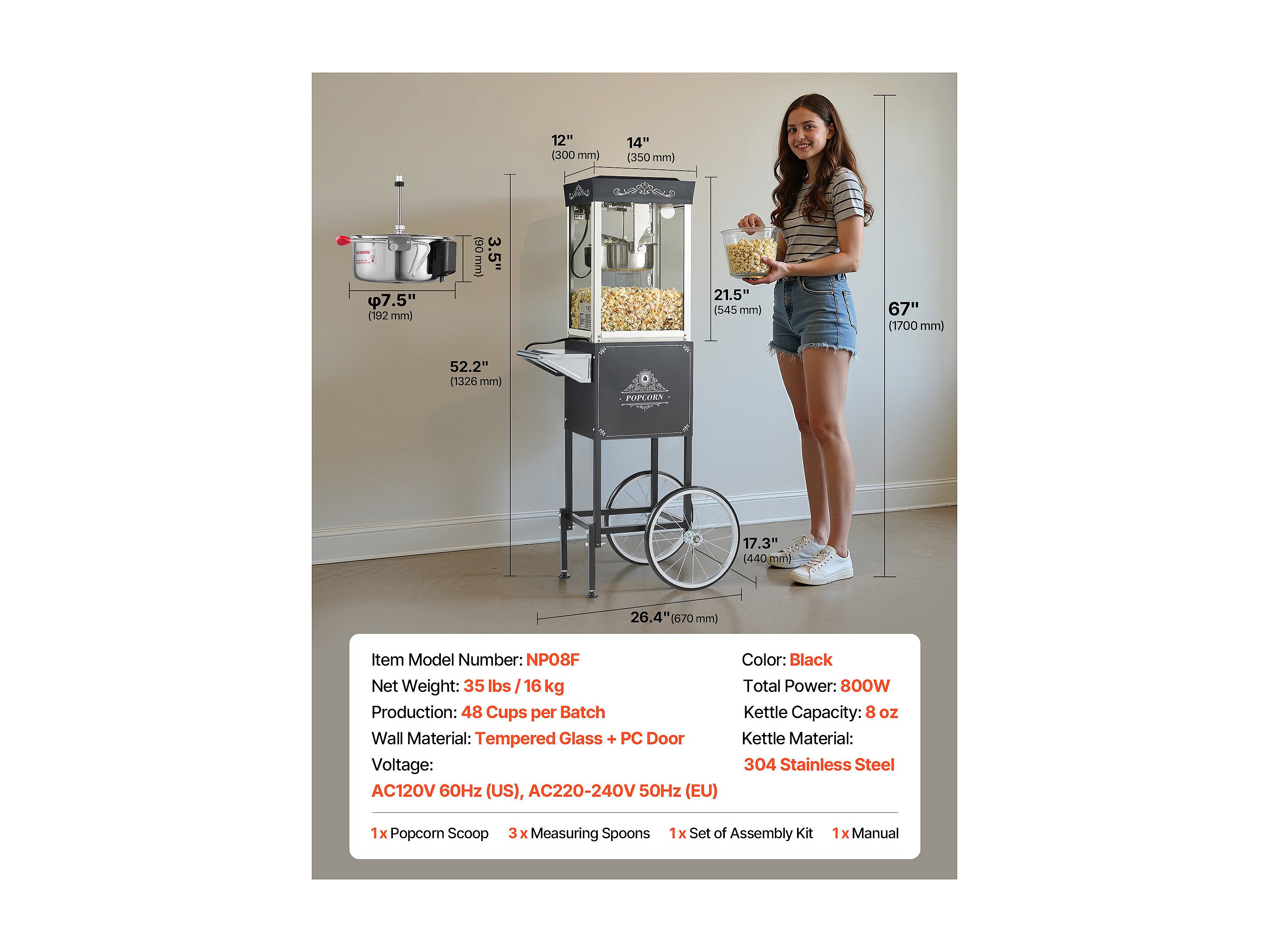 Macchina per Popcorn SucceBuy con Carrello, Scoppiatrice 800 W, Grande Ciotola in Acciaio Inox 0,2 kg, 48 Tazze per Lotto, con Comando a 2 Pulsanti