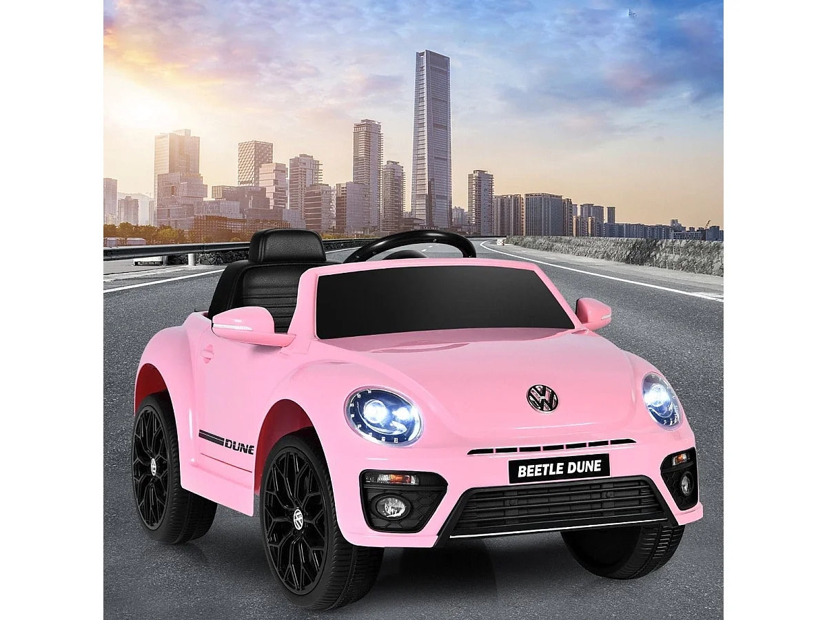 Maggiolino per bambini elettrico con telecomando luci sedile accogliente, Giocattolo realistico cavalcabile Rosa