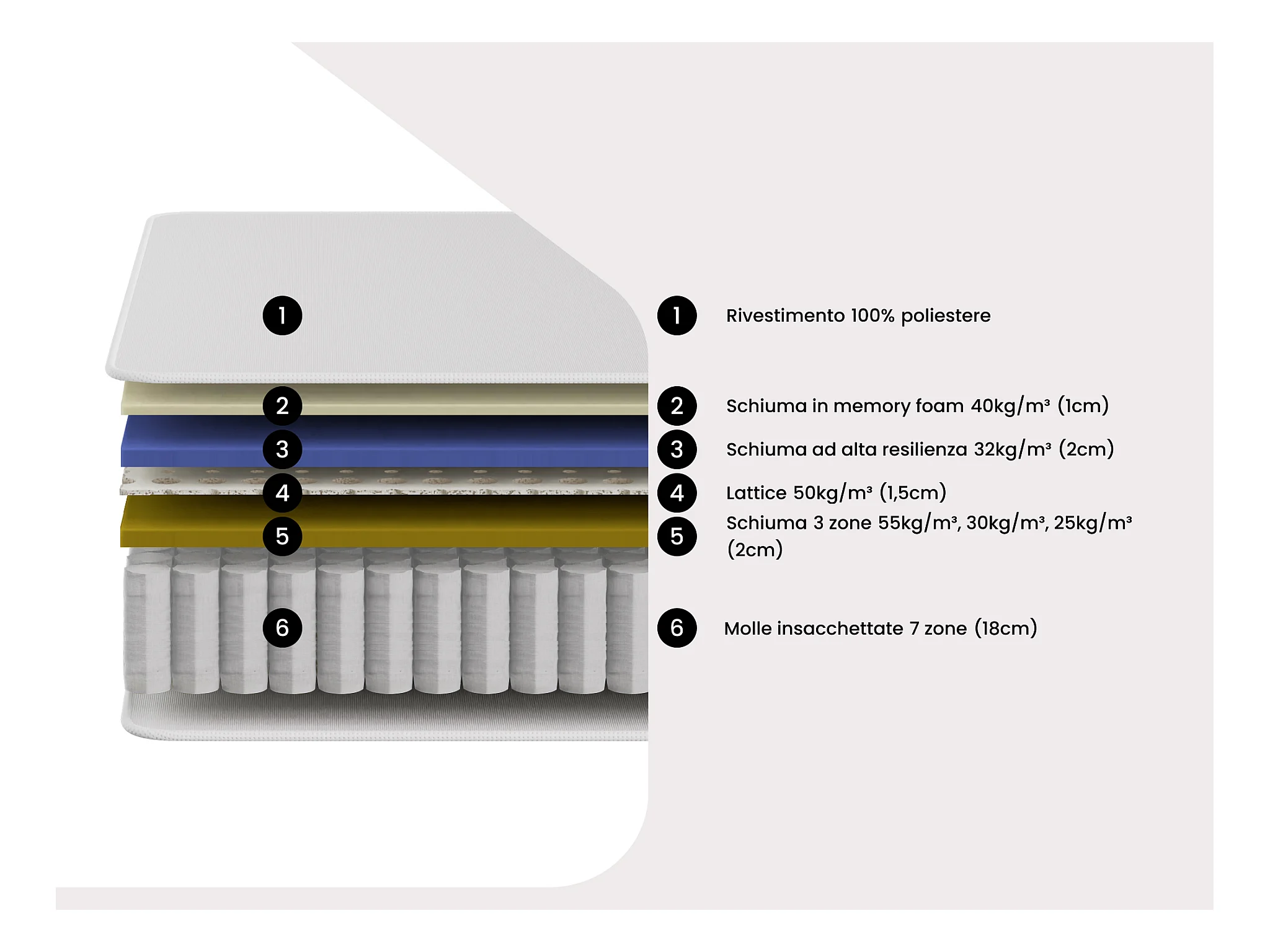 Materasso 160 x 200 cm ibrido a molle insacchettate 7 zone memory foam sp.25cm - MALAO di PALACIO
