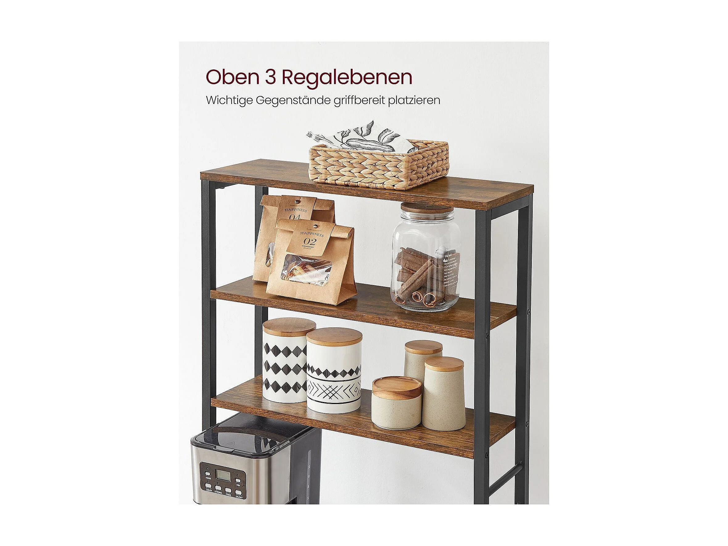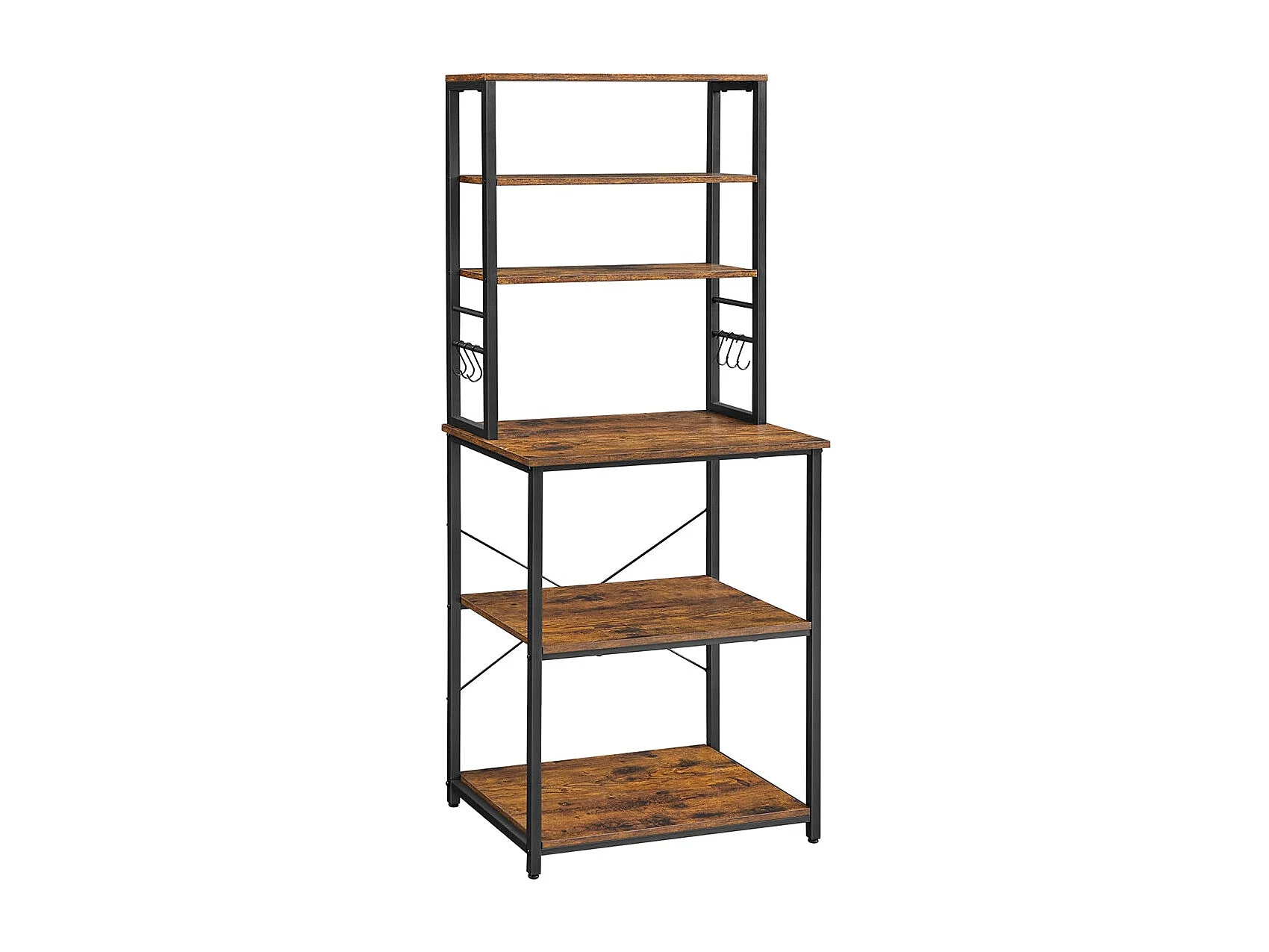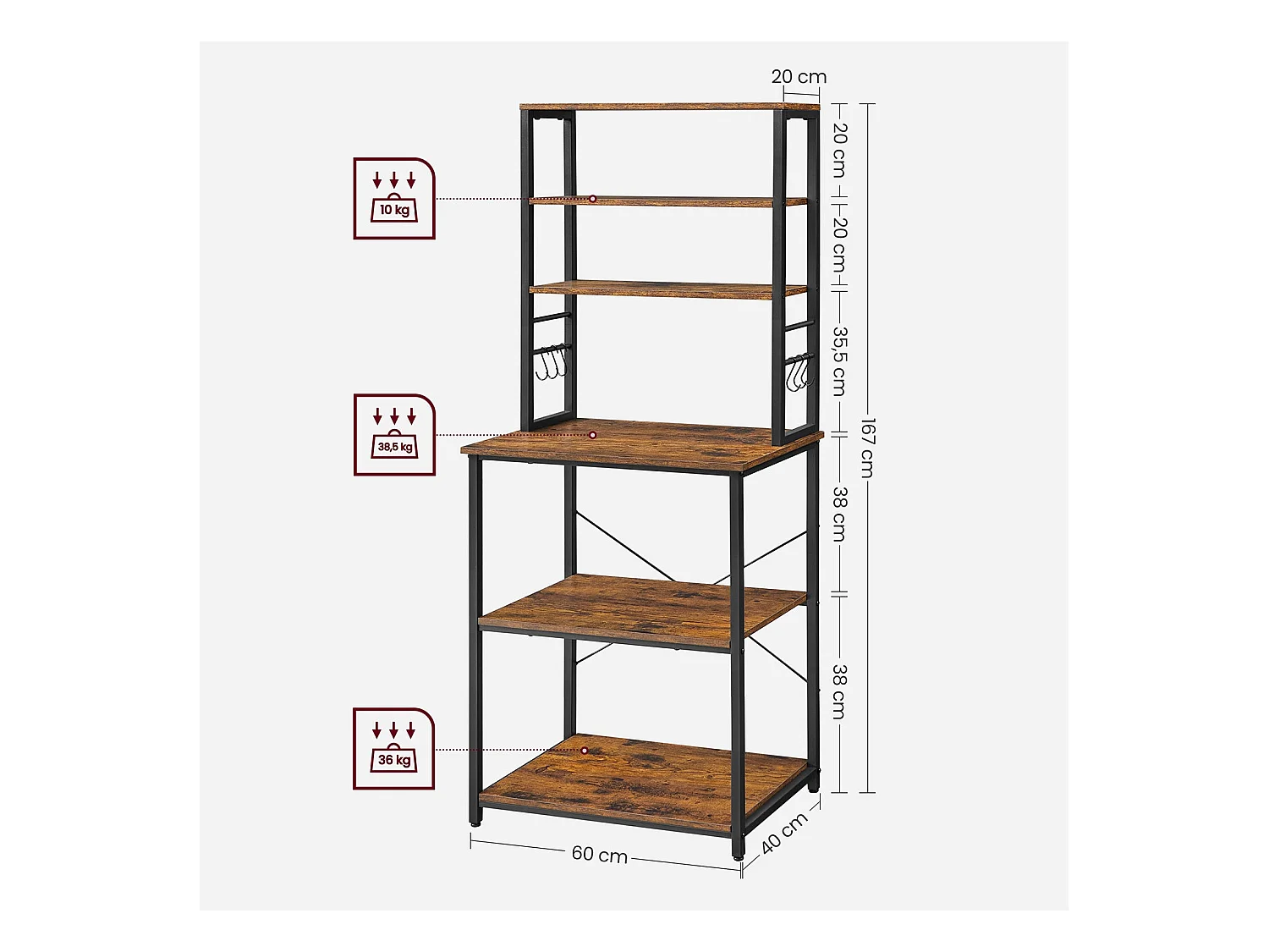 Scaffale da cucina da 170 cm con presa elettrica, Mobile per bar del caffè con ganci a S e supporti per bottiglie di vino Marrone Rustico