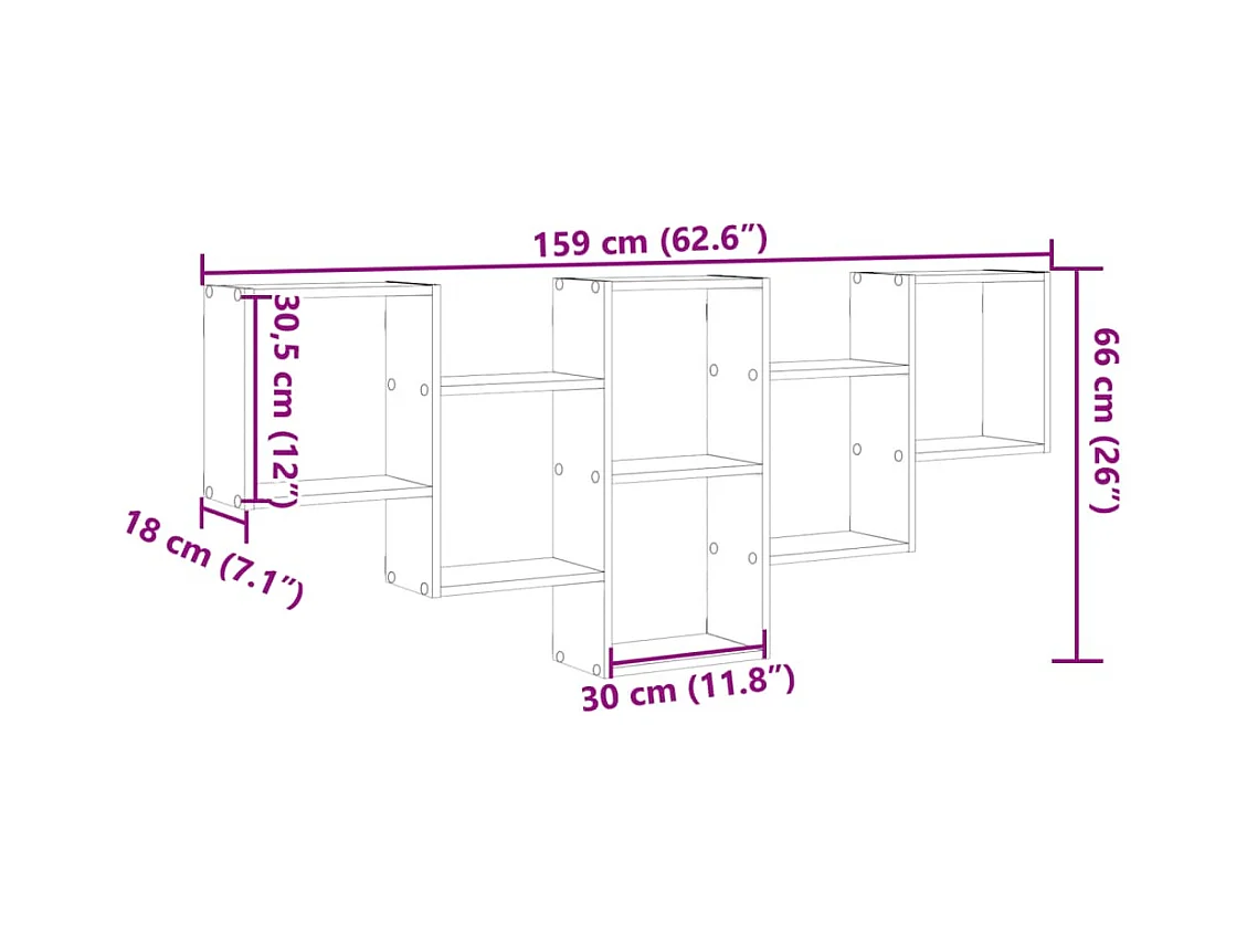 Mensola da parete in rovere affumicato 159x18x66 cm in legno ingegnerizzato