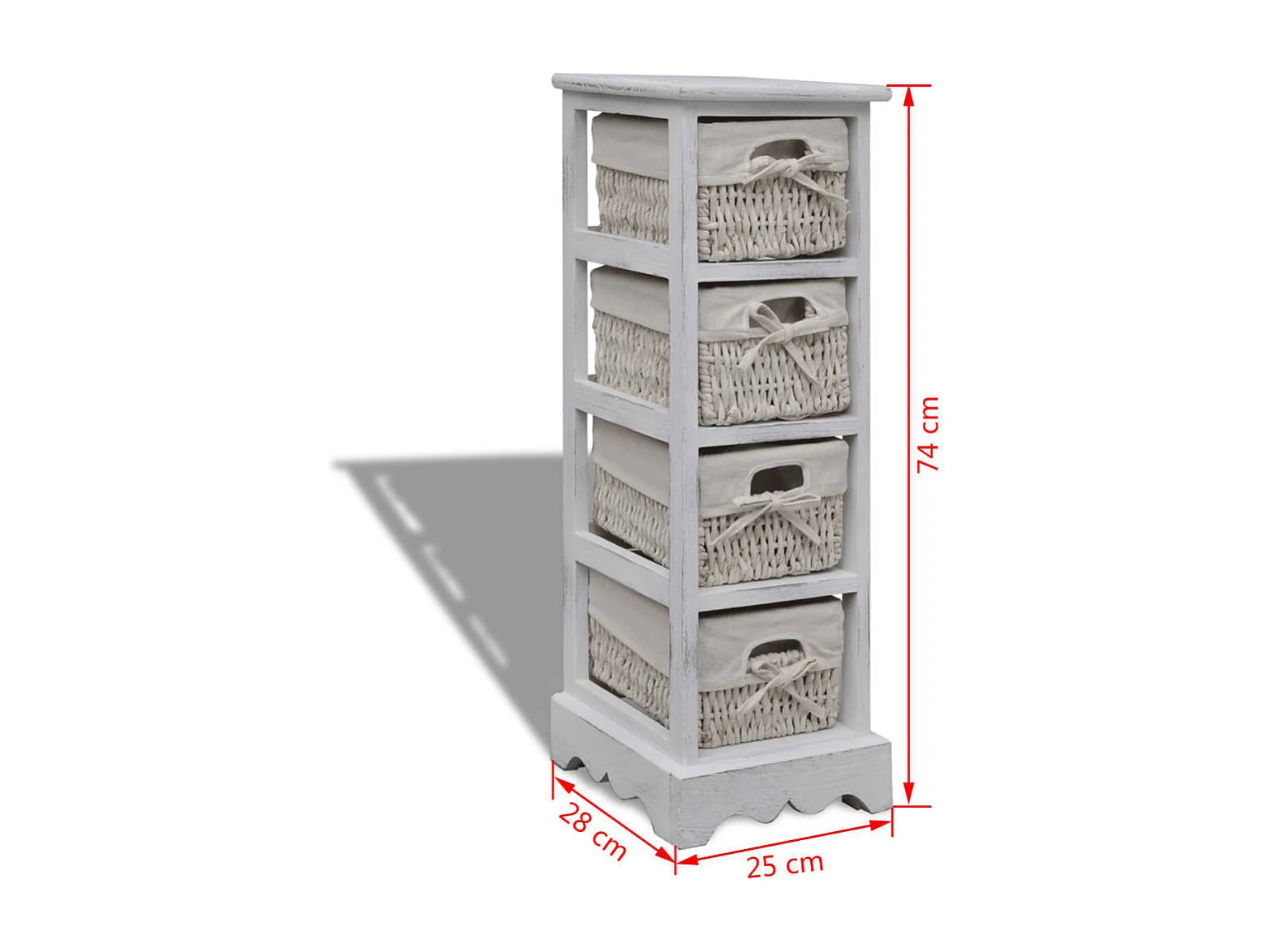 Mensola portaoggetti in legno con 4 cestini intrecciati bianchi