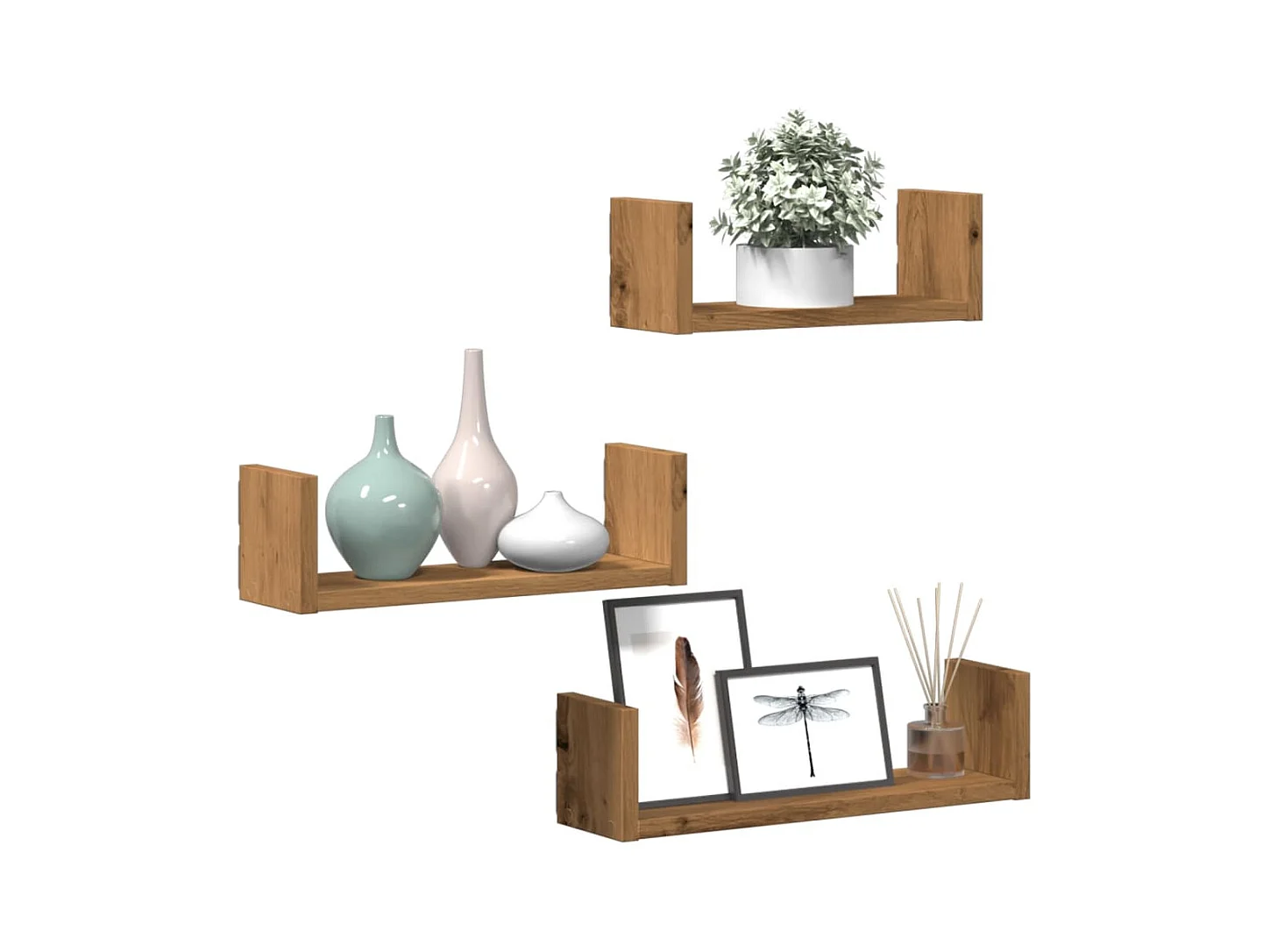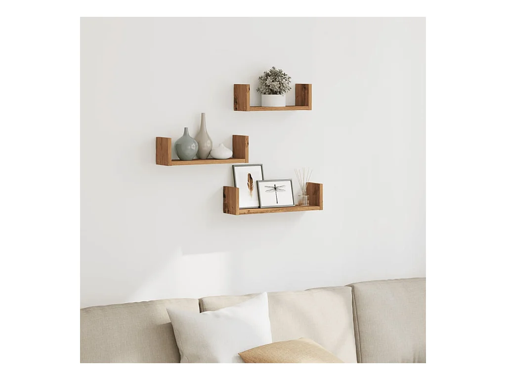 Mensole a Muro 3pz Rovere Artigianale in Truciolato