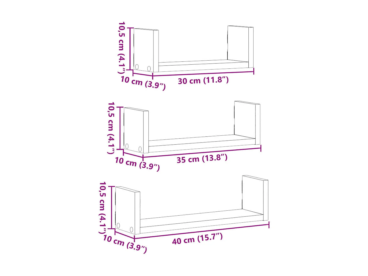 Mensole da parete a 3 pezzi, rovere Sonoma, legno ingegnerizzato