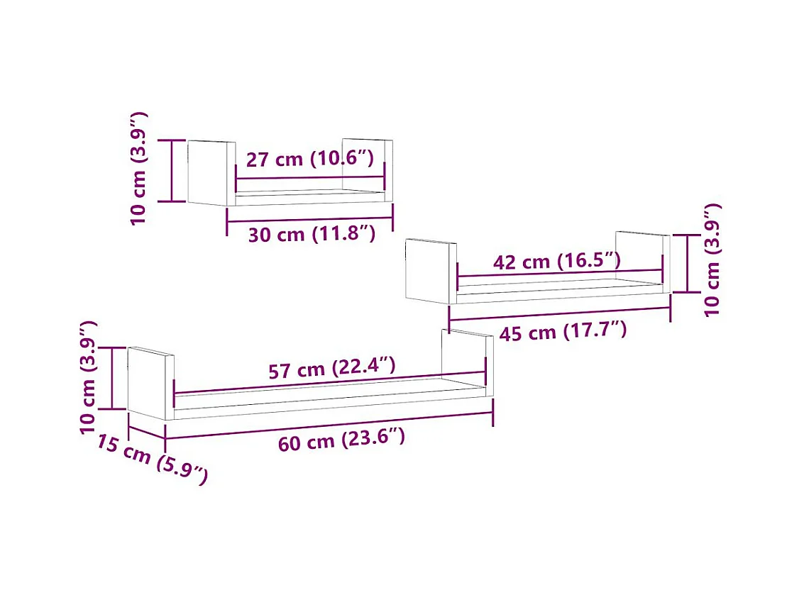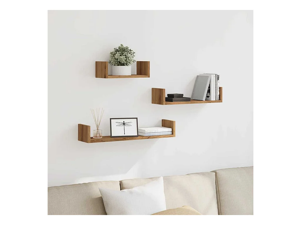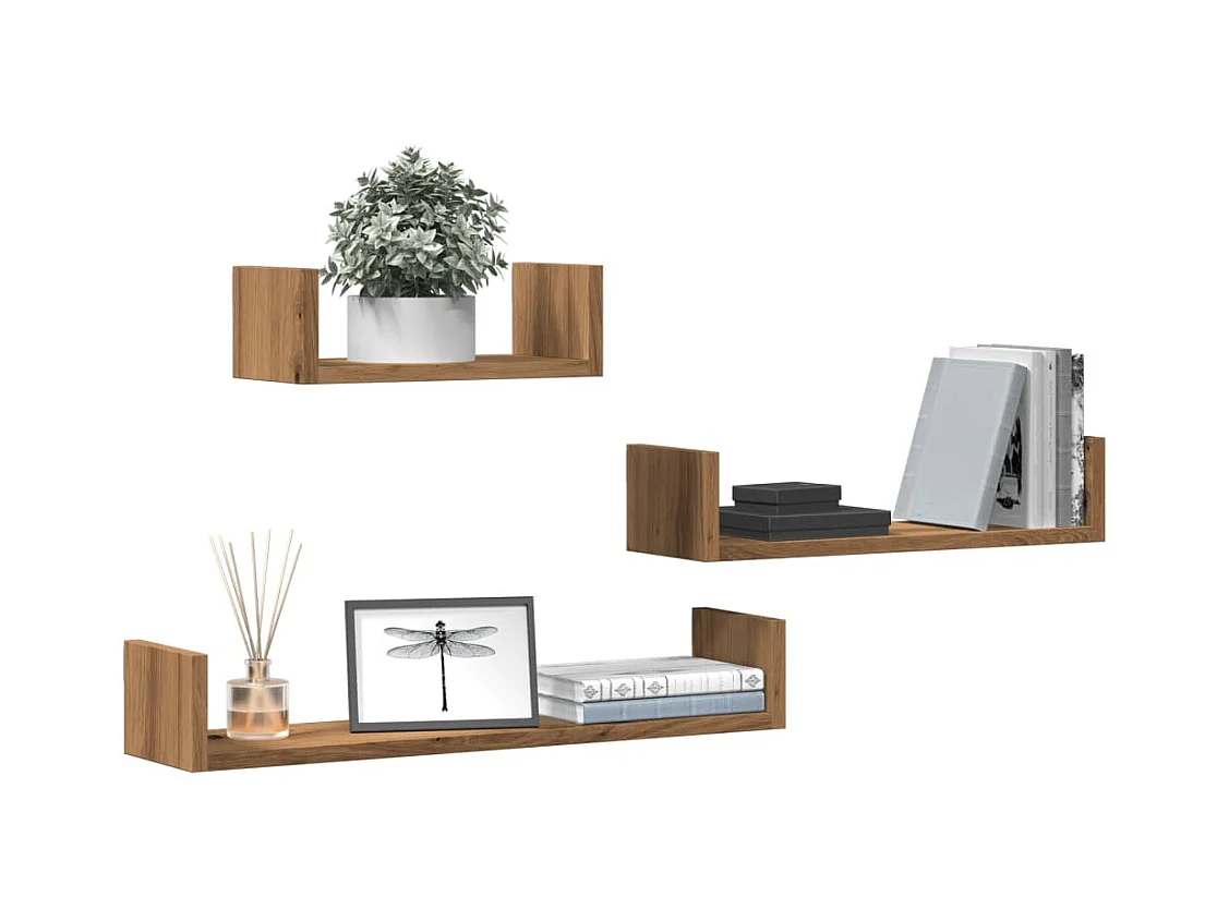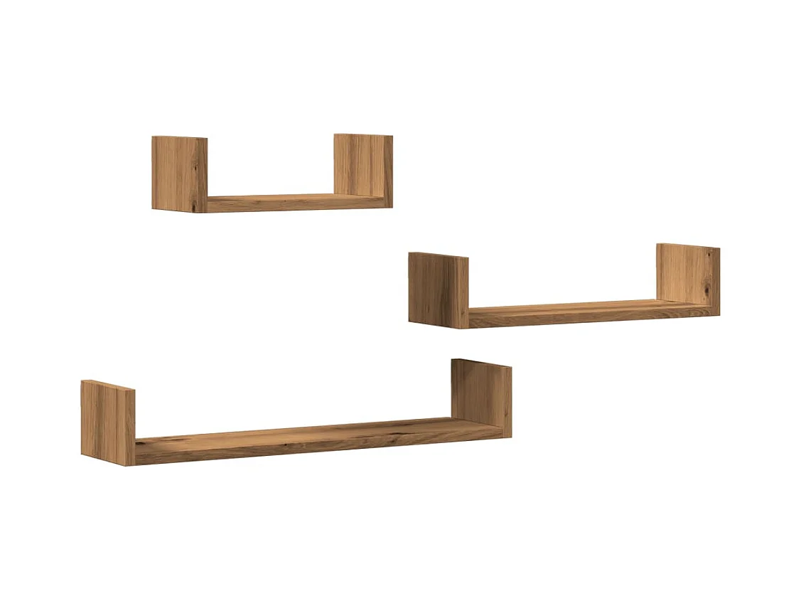 Mensole da parete espositive in rovere affumicato, 3 pezzi, in legno ingegnerizzato