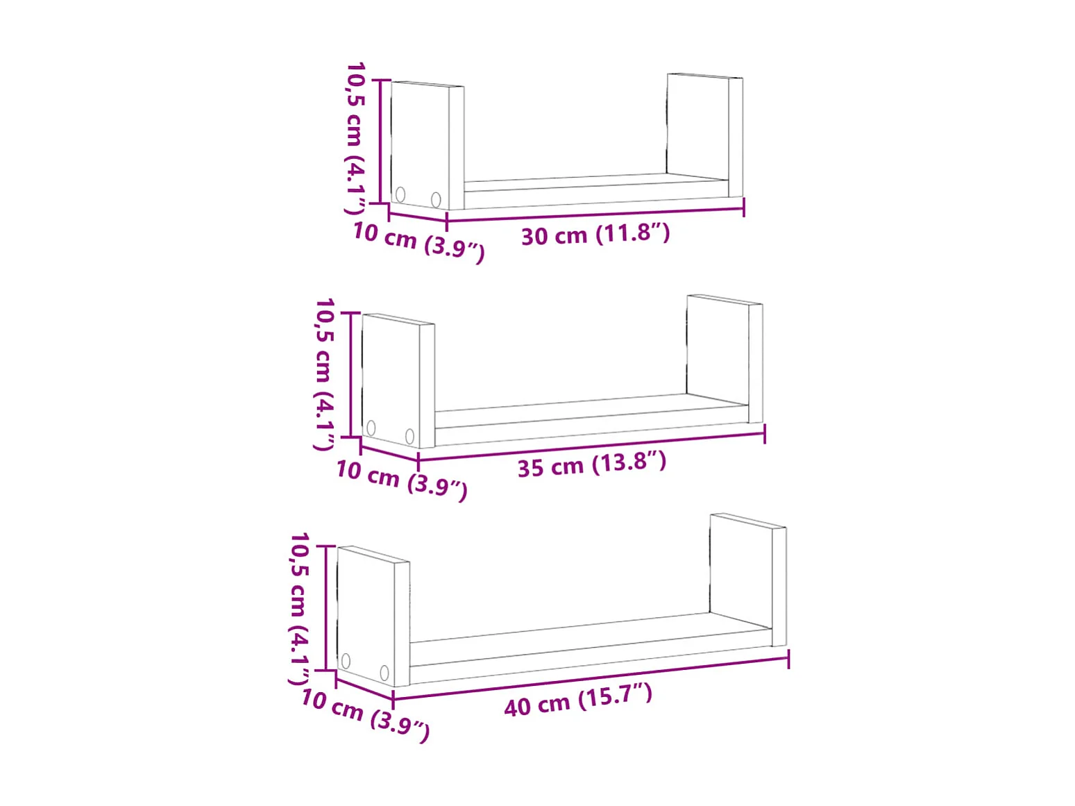 Mensole da parete in legno ingegnerizzato bianco a 3 pezzi