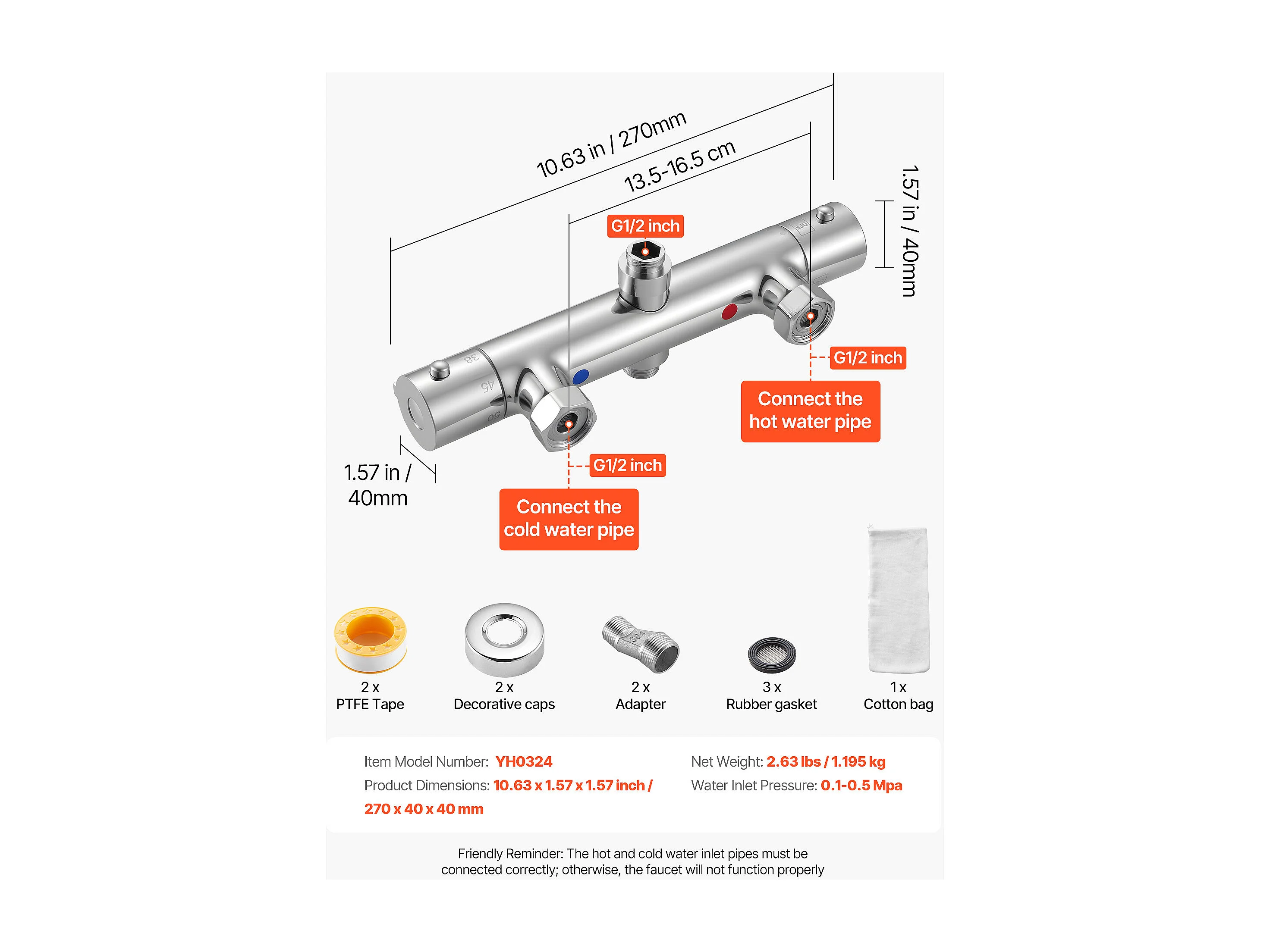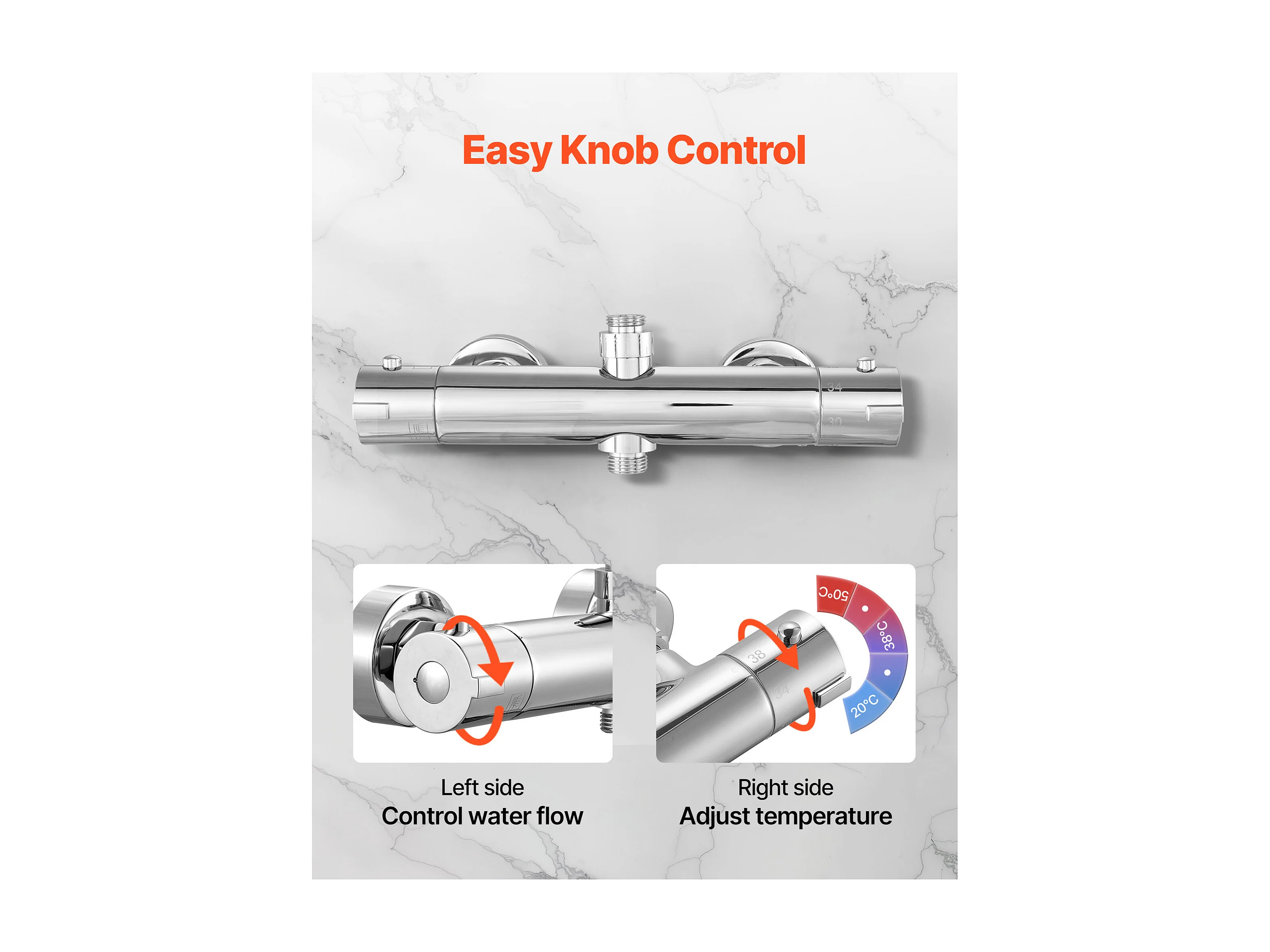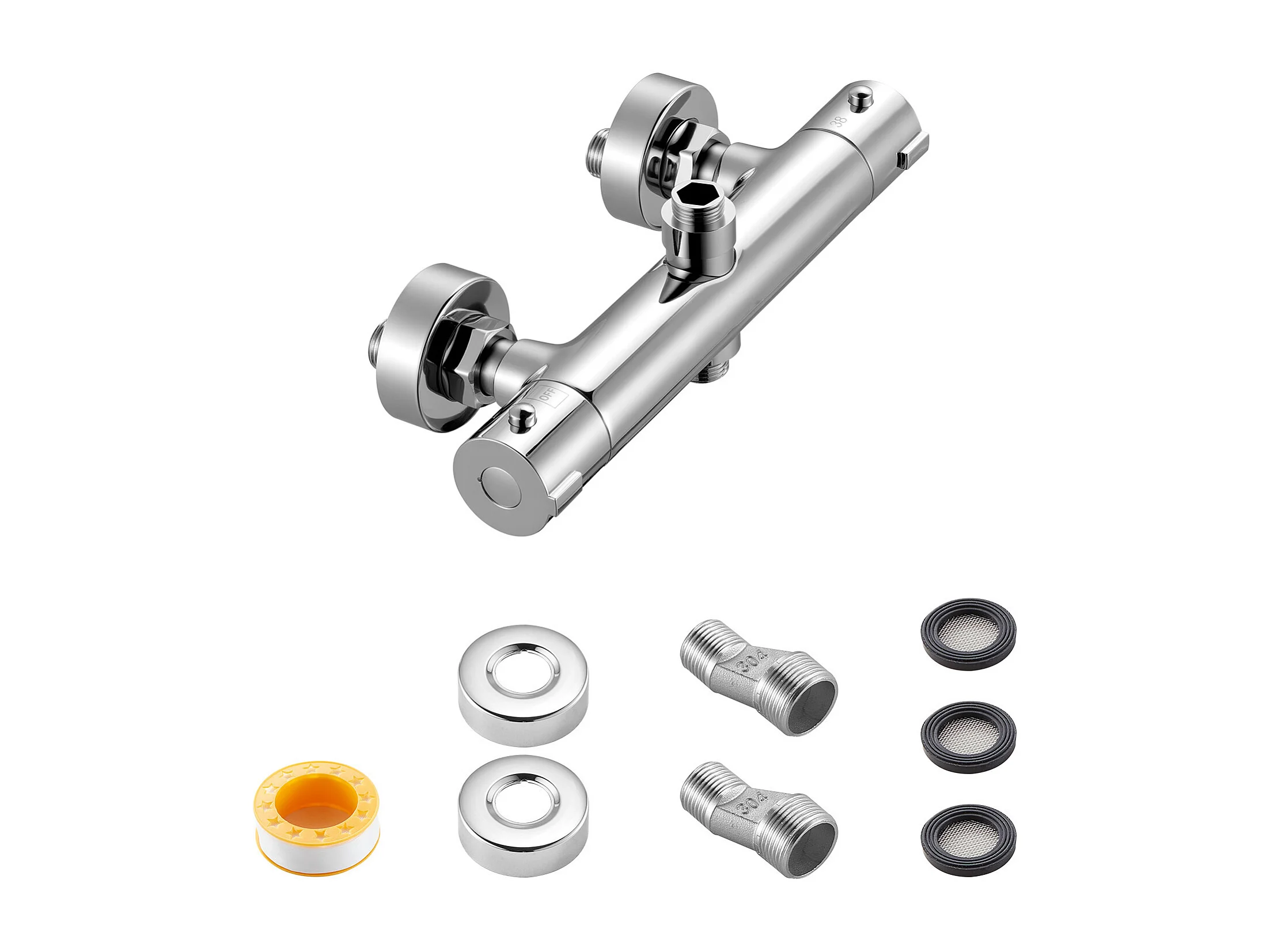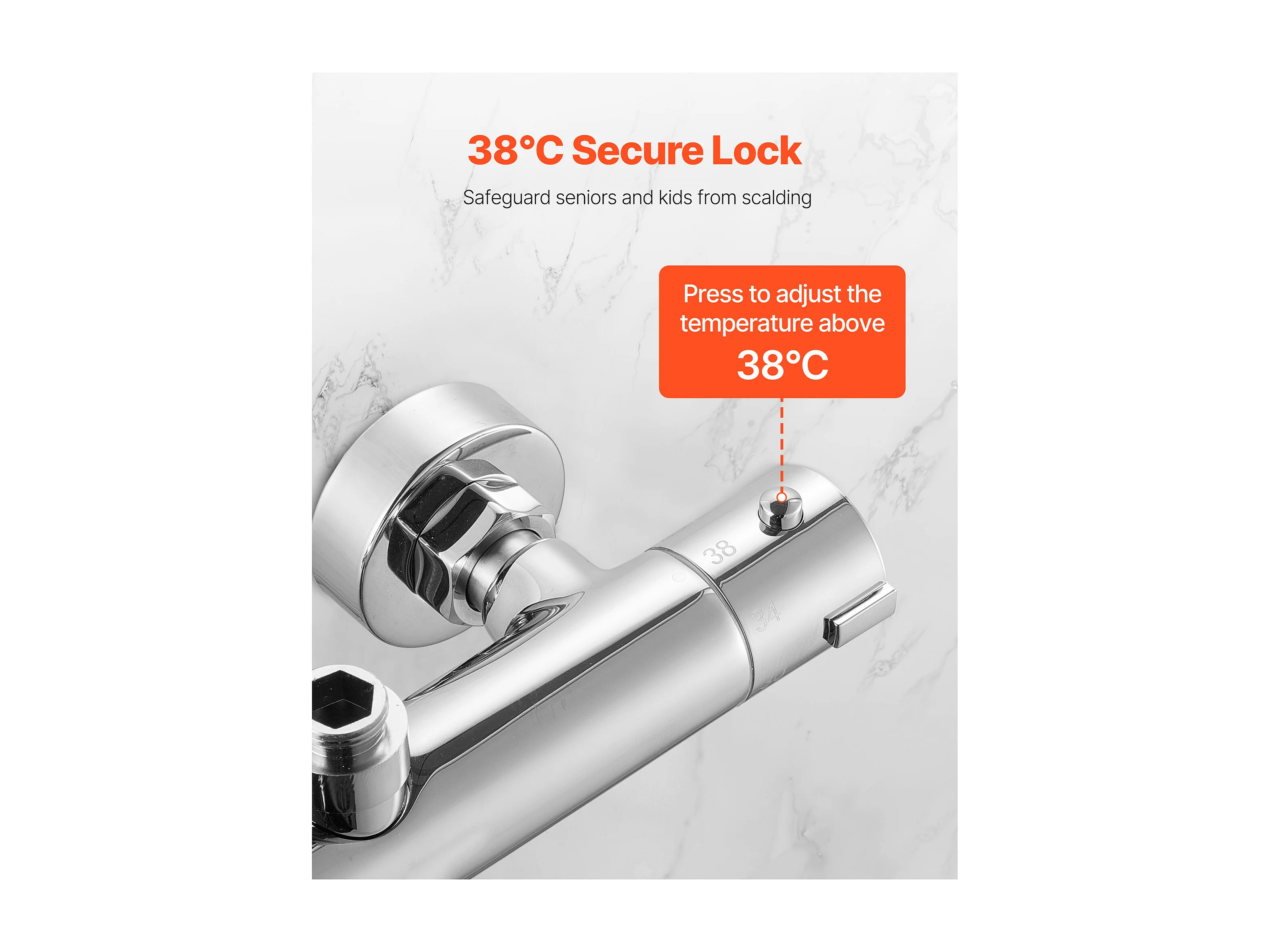 Miscelatore per Doccia Termostatico SucceBuy con Blocco di Sicurezza 38°C, Valvola Termostatica con Temperatura Costante, Rubinetto Doccia ad Acqua Calda