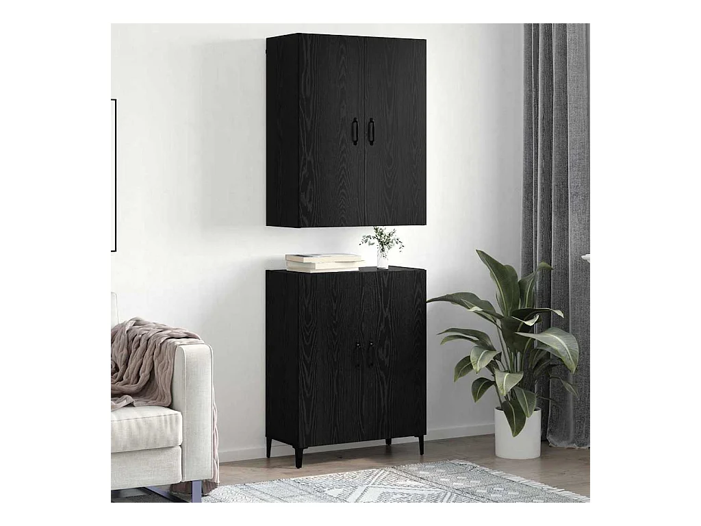Mobile alto 2 pezzi Rovere nero 69,5 x 34 x 180 cm