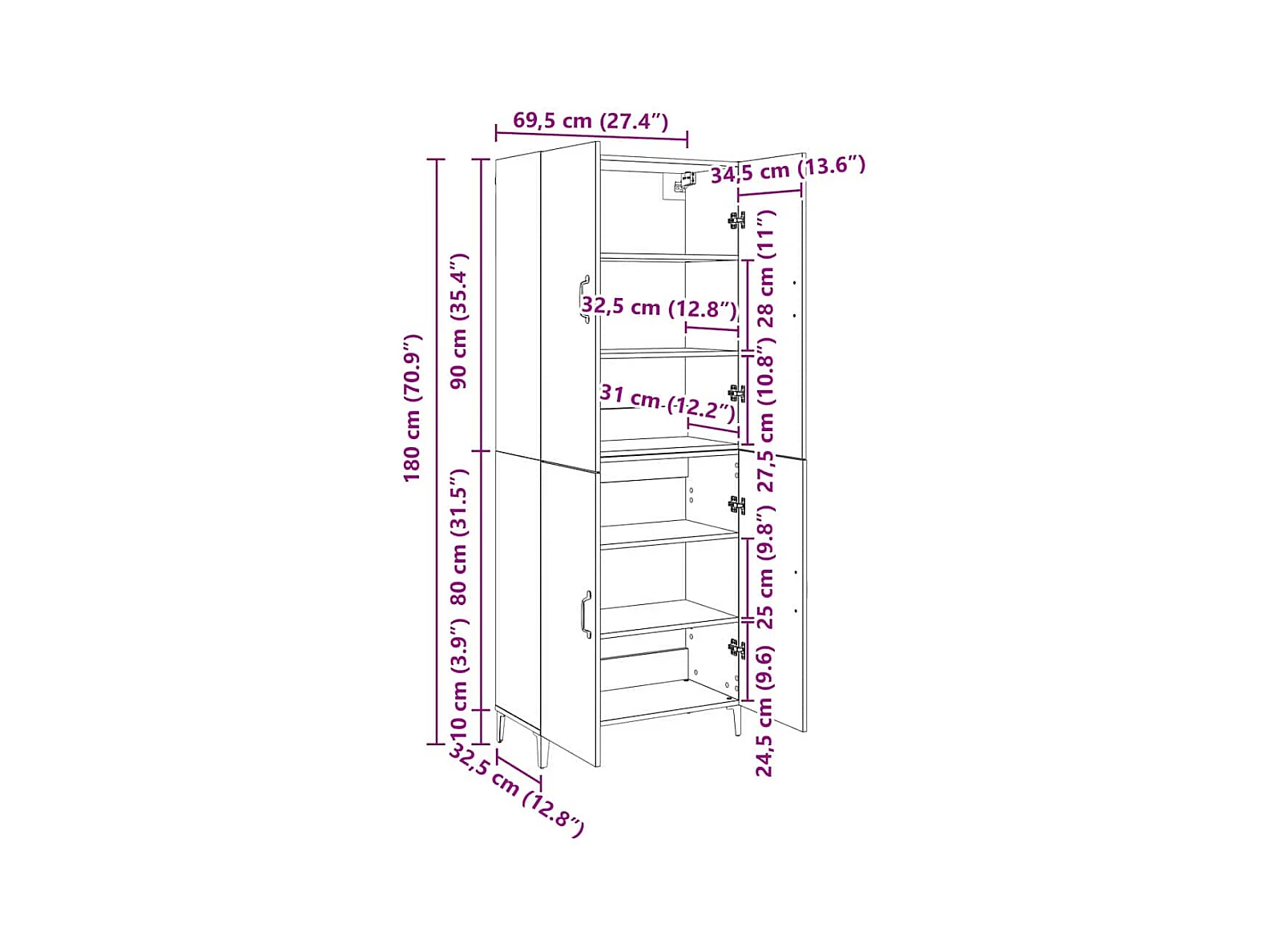 Credenza alta nera 69,5x34x180 cm Legno ingegnerizzato