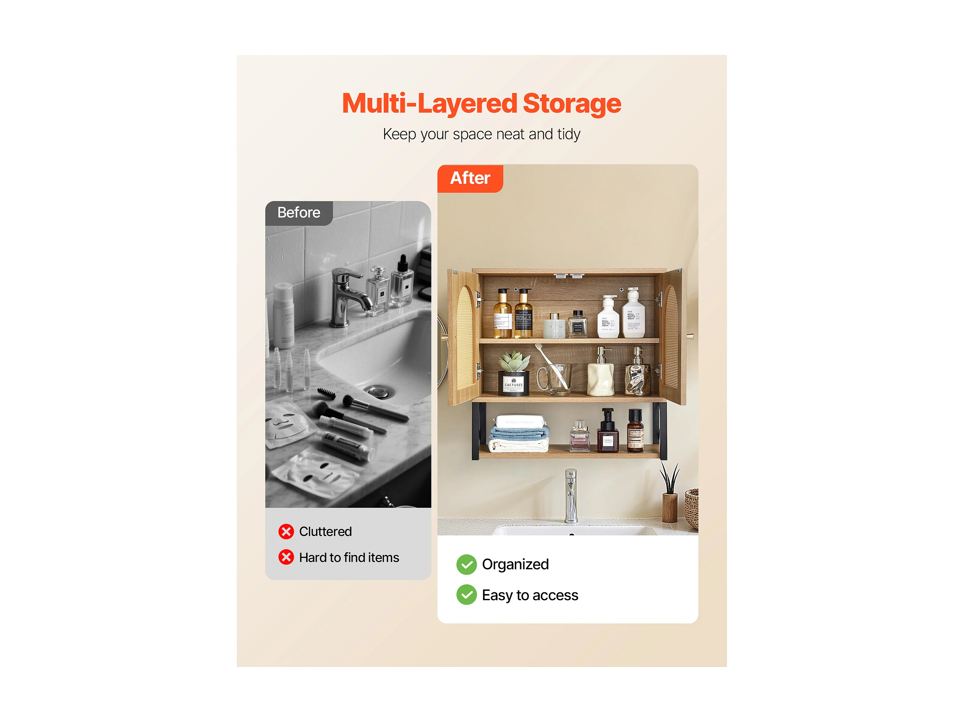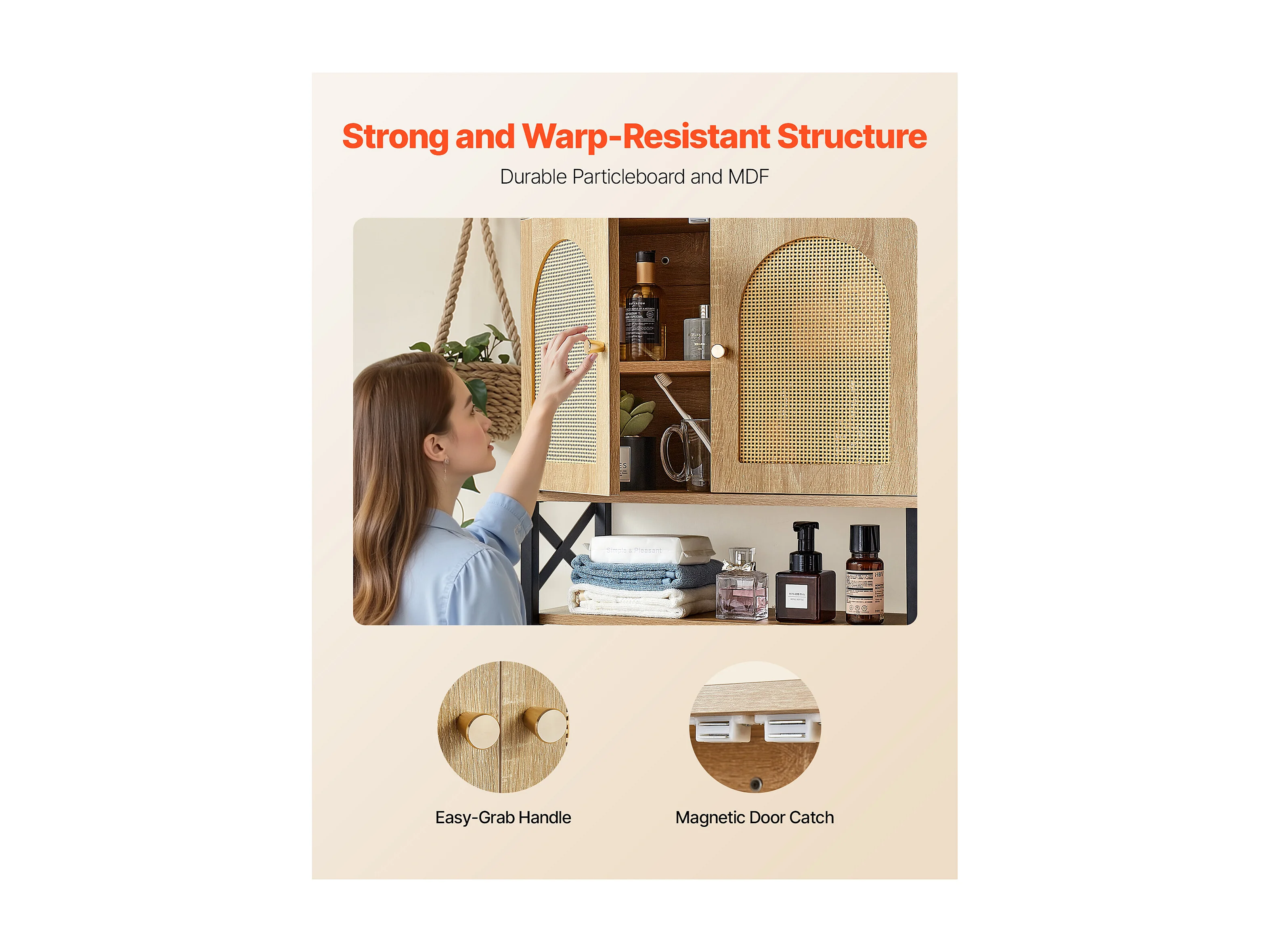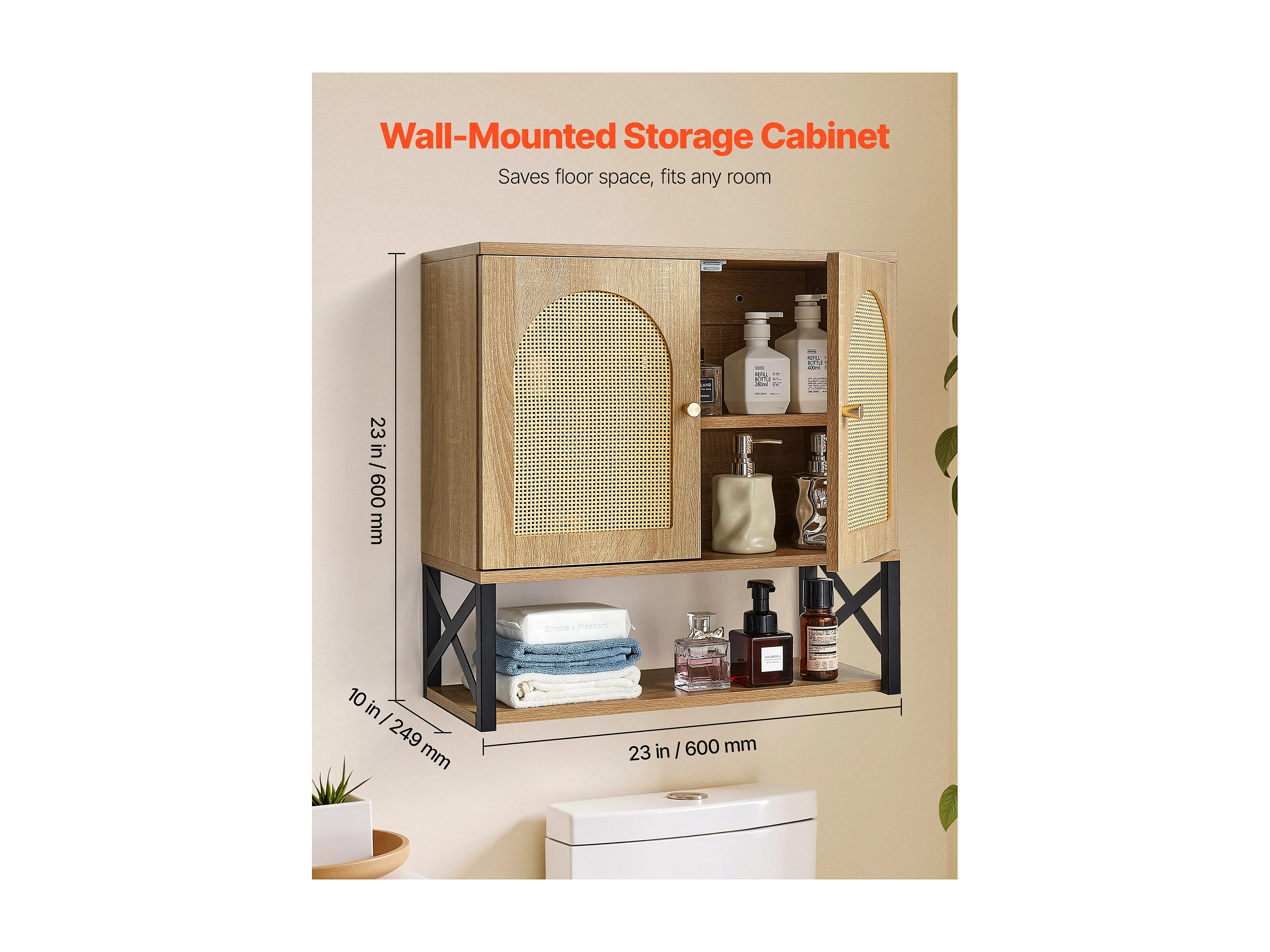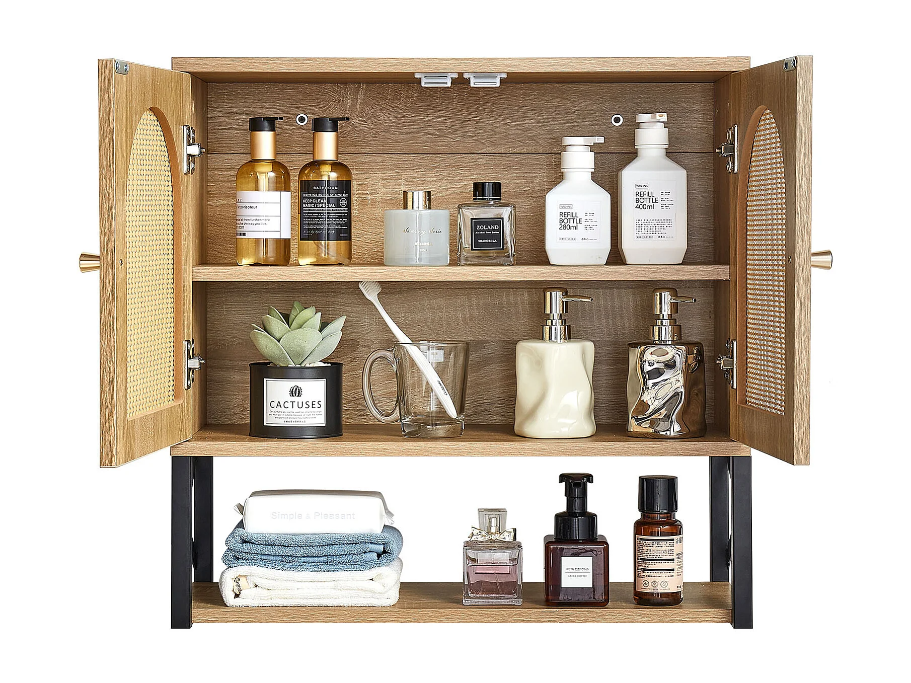 Mobile da Bagno a Parete SucceBuy, 2 Ante e Ripiano Regolabile con 3 Livelli di Altezza, Armadietto Medicinale da Riposto sopra il Water