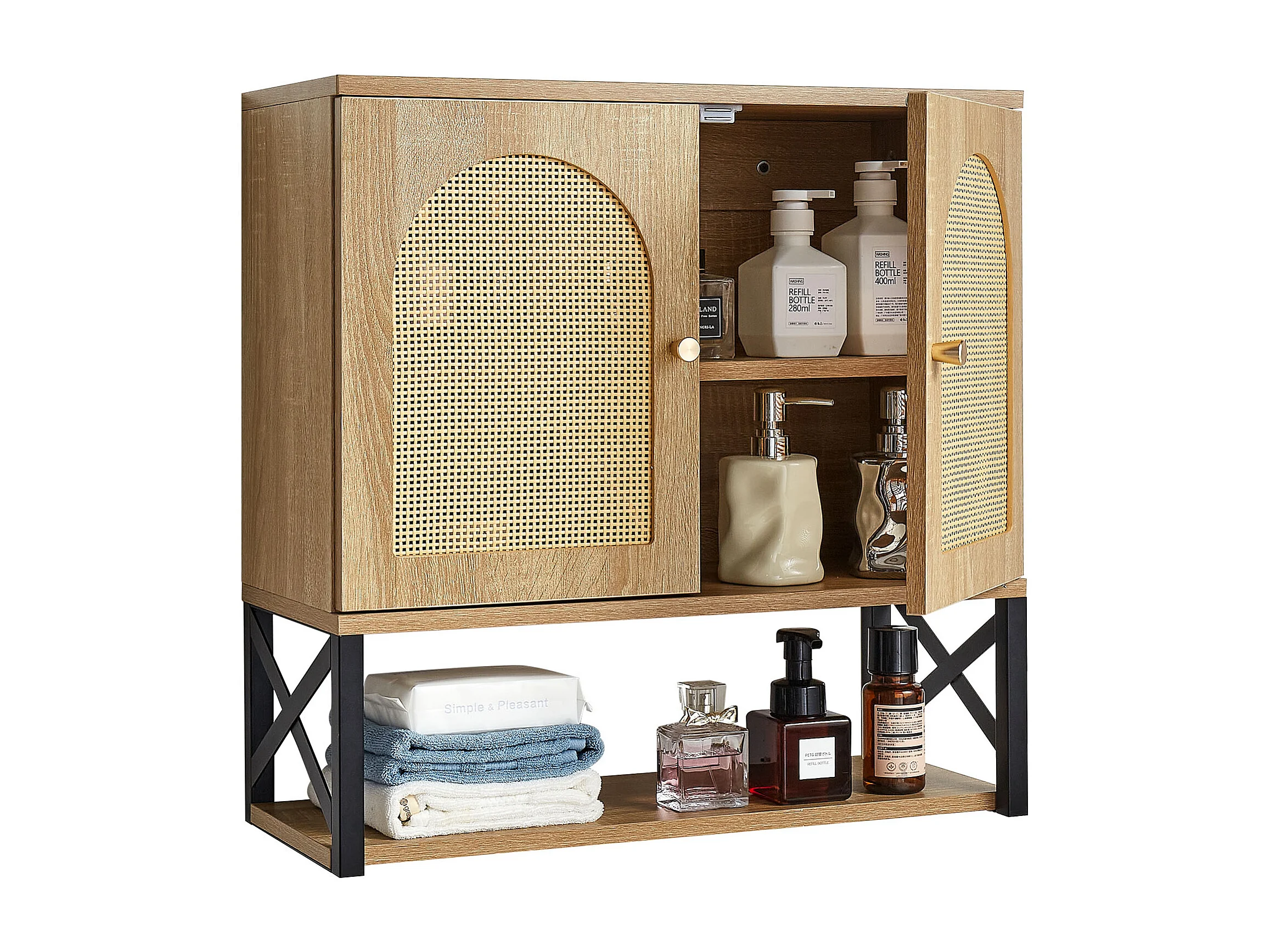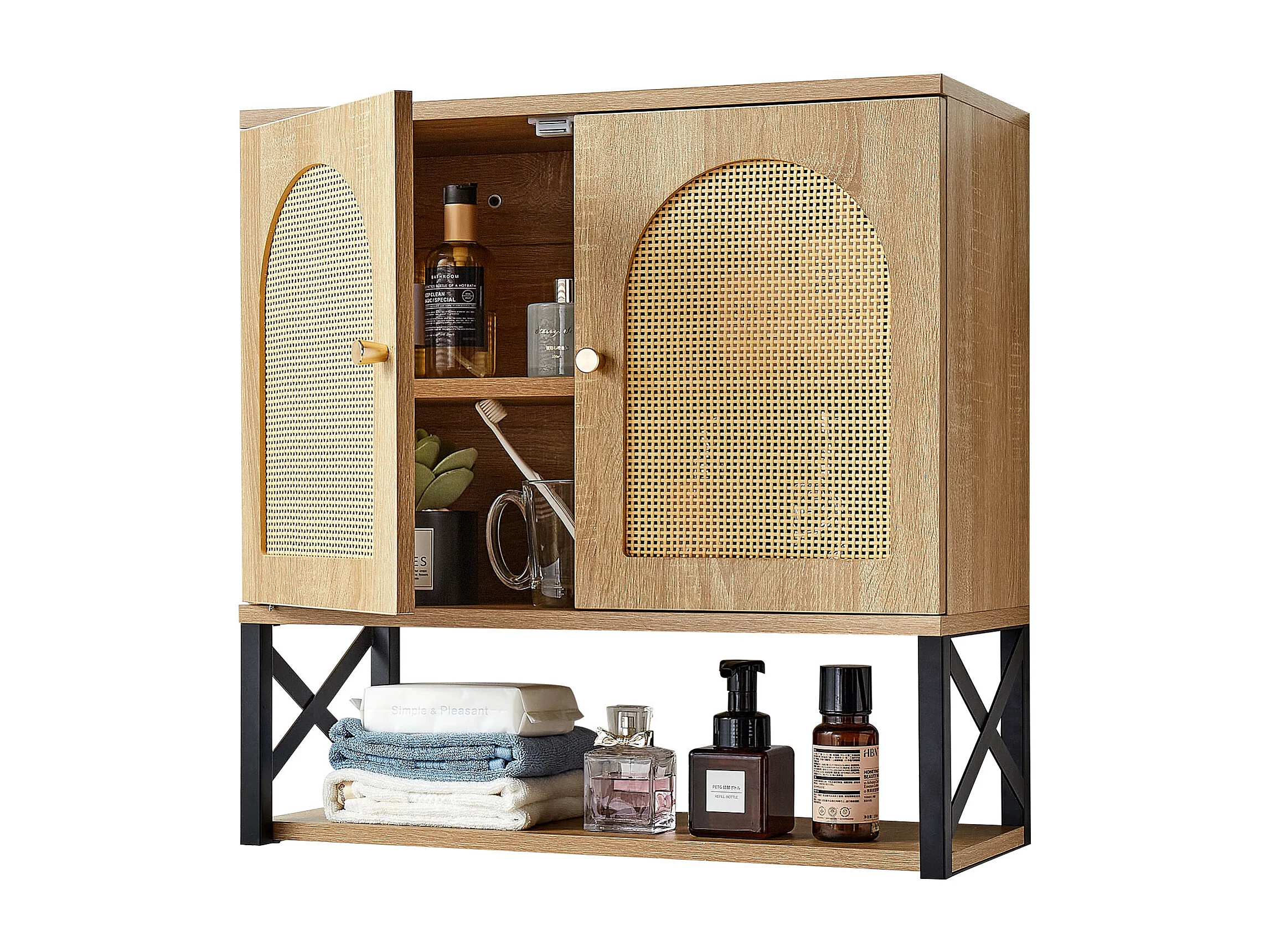 Armadio da bagno a parete con 2 ante, mobile contenitore sospeso