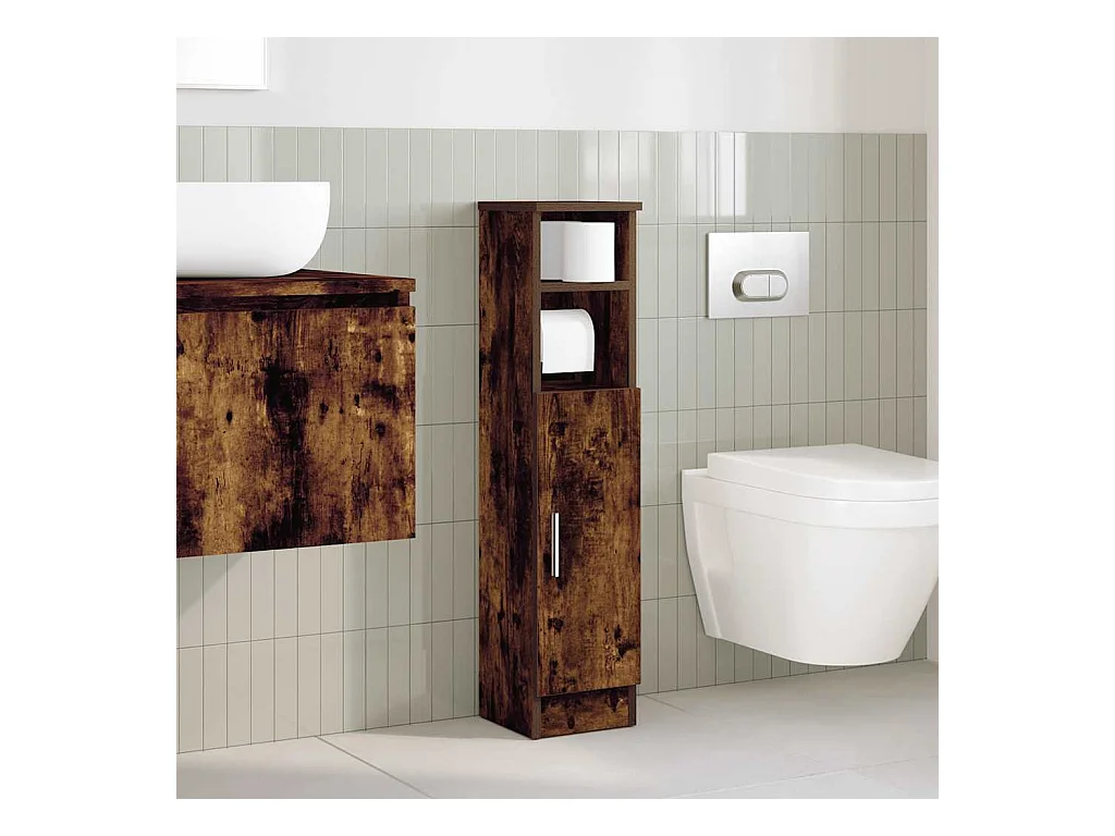 Mobile da bagno con portarotolo in rovere lavorato a mano
