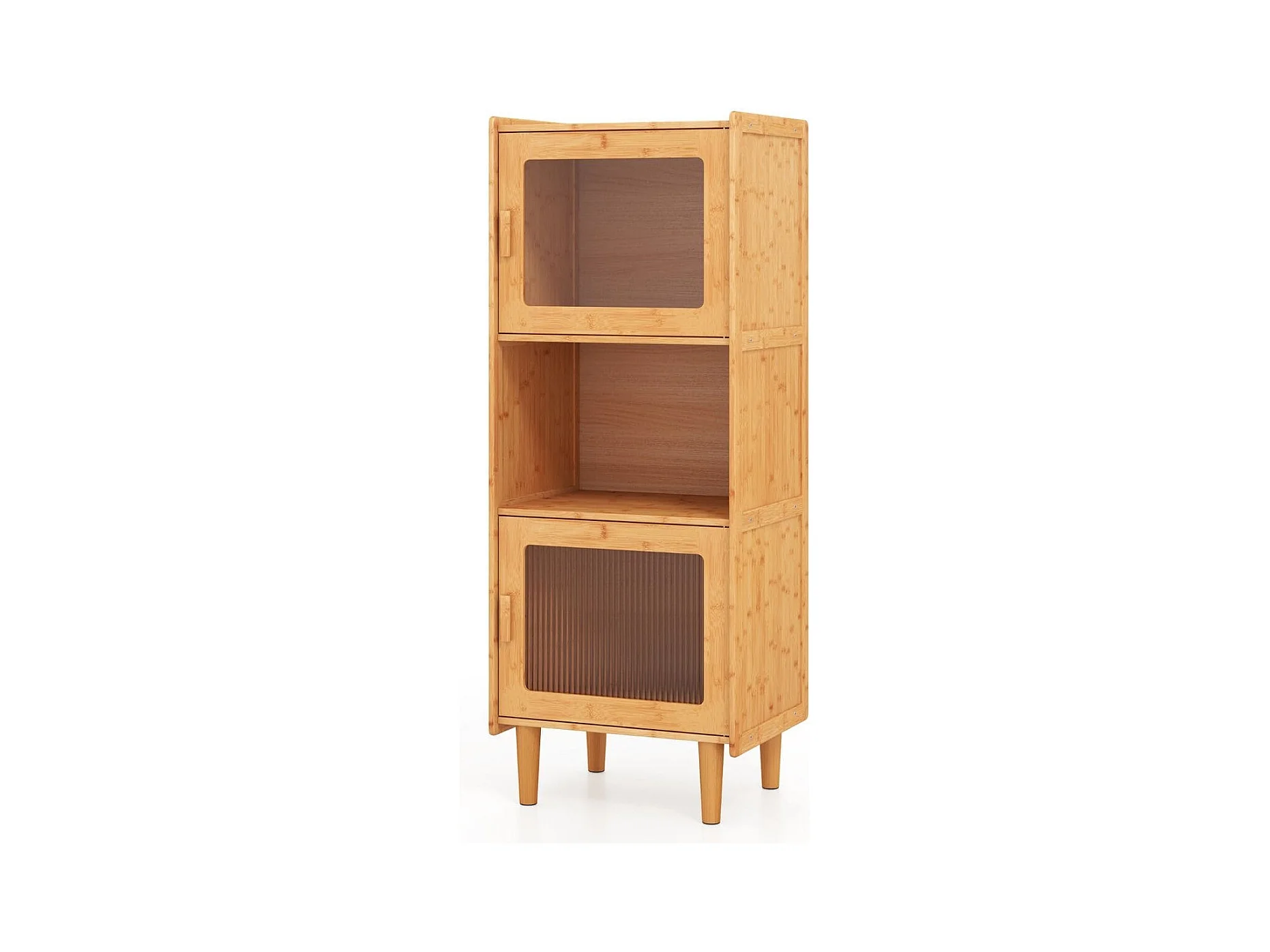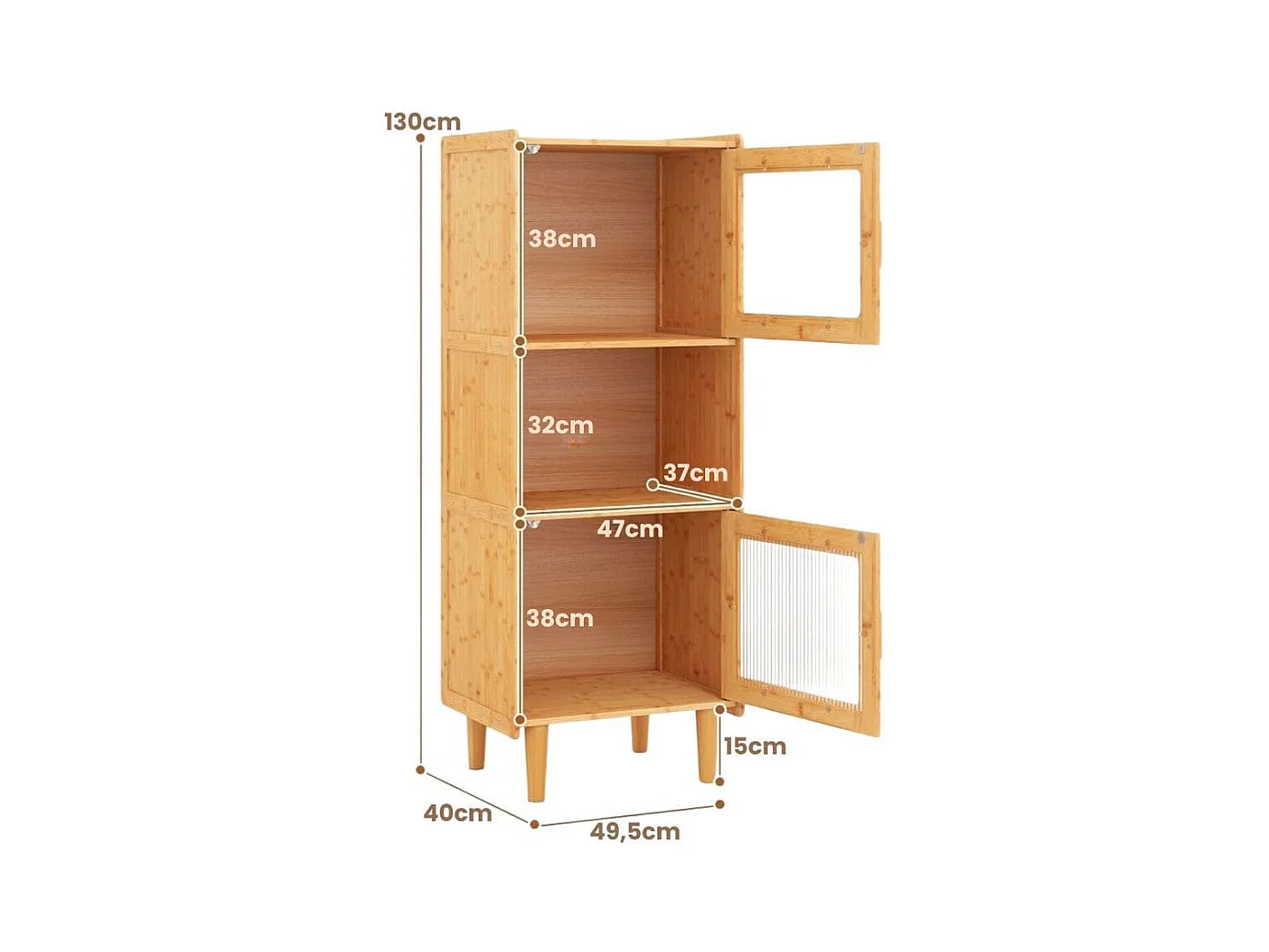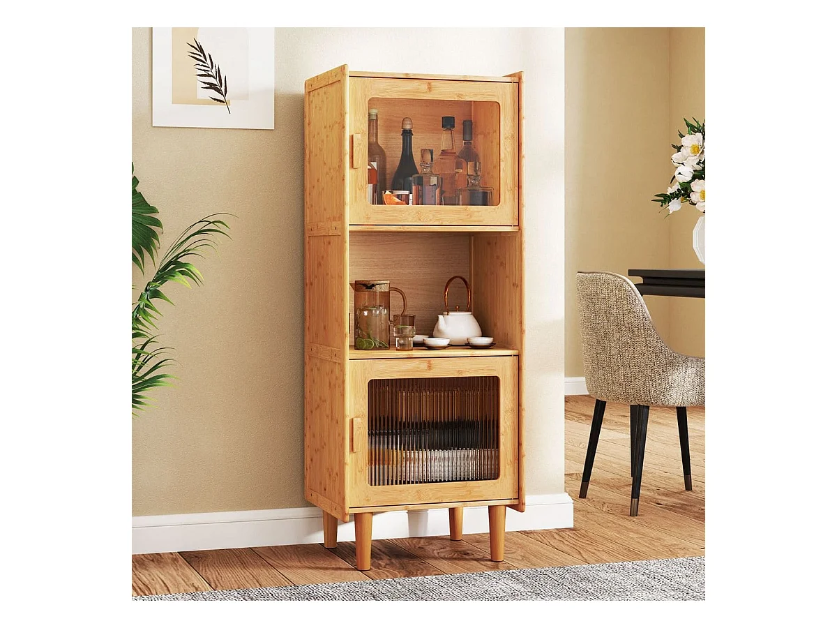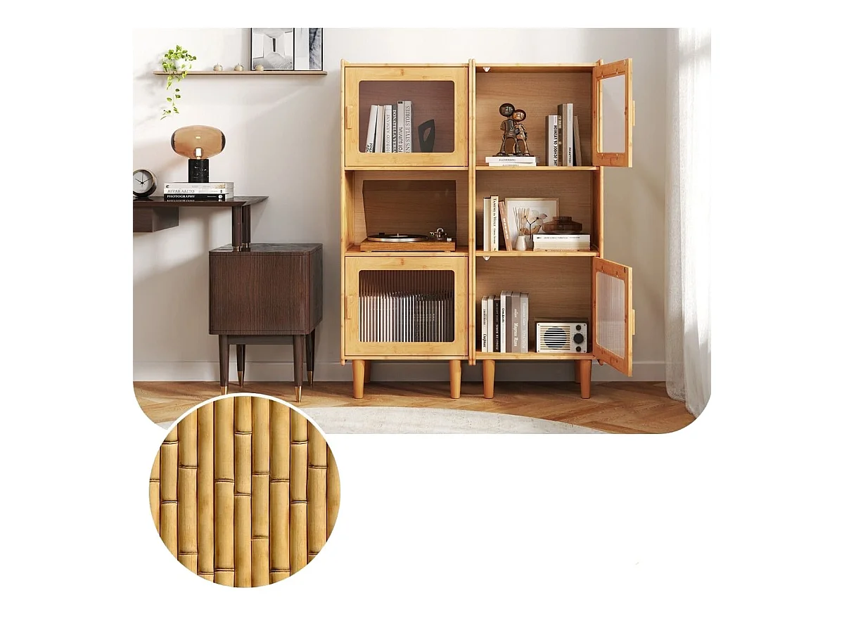 Mobile da cucina a 3 cubi con scomparto aperto 2 ante in acrilico, Mobile in bambù per Soggiorno Naturale