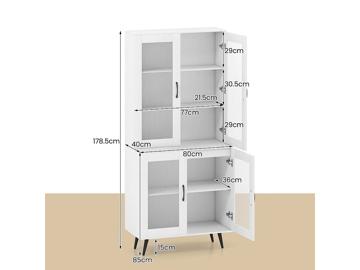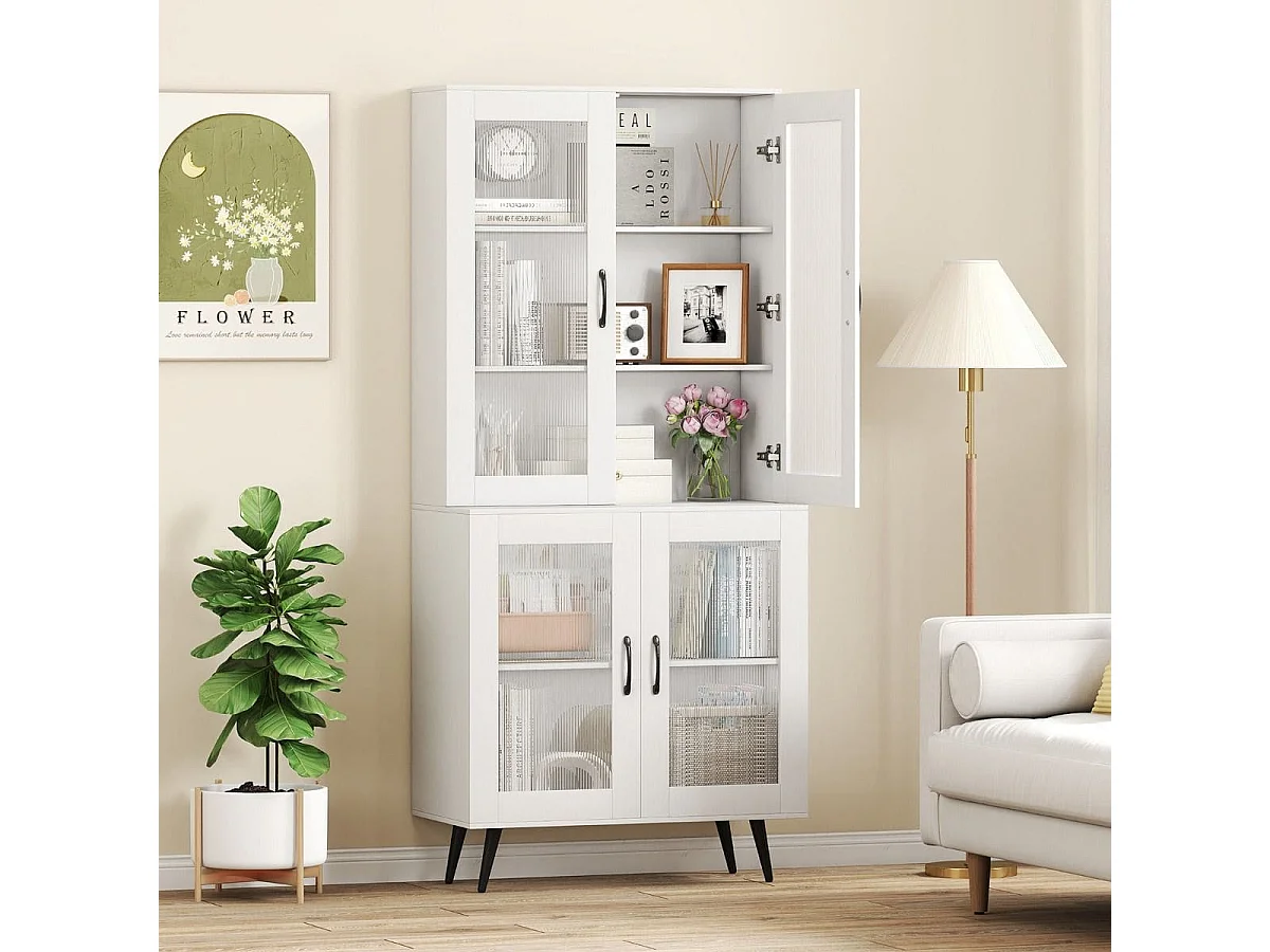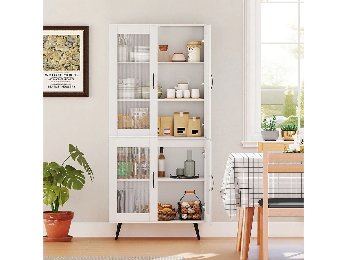 Mobile da cucina alto con 4 ante trasparenti e ripiano regolabile Mobile da cucina a buffet bianco